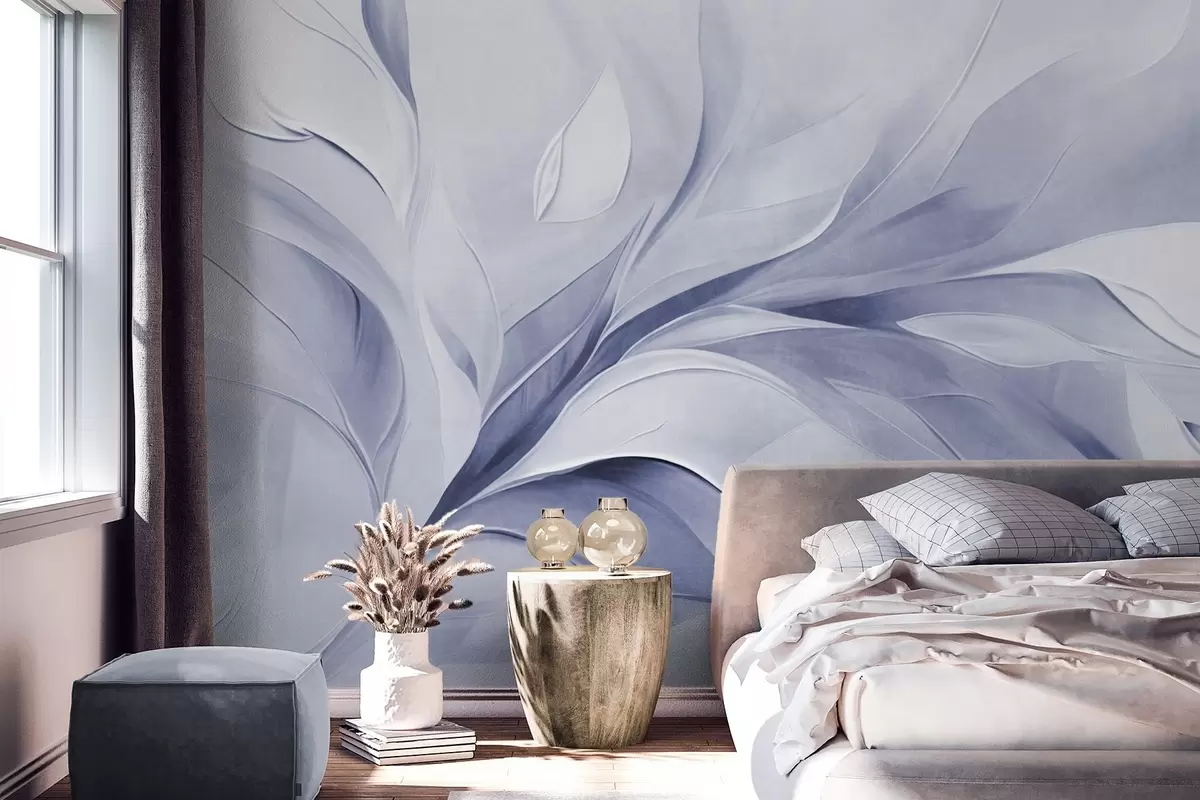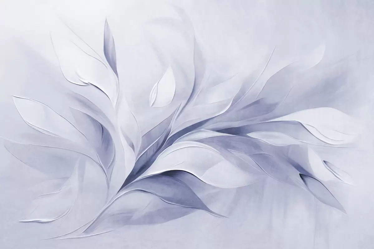 Zidne murale Apstraktni teksturirani stil slikanja blijedoplavih i bijelih tekućih listova br. w09765