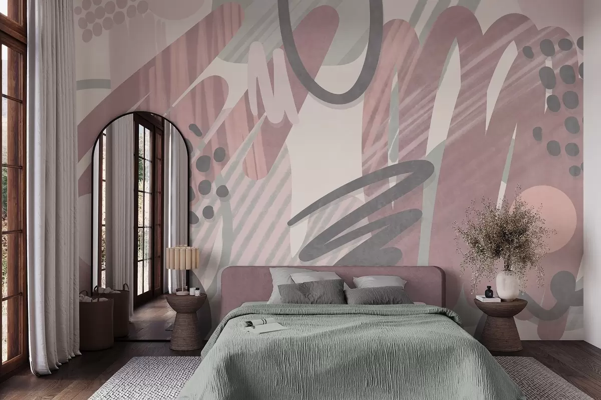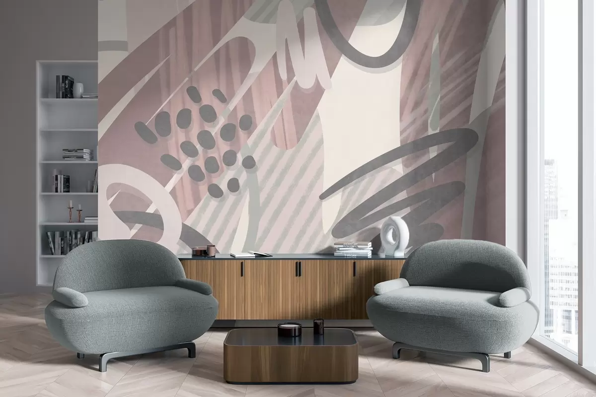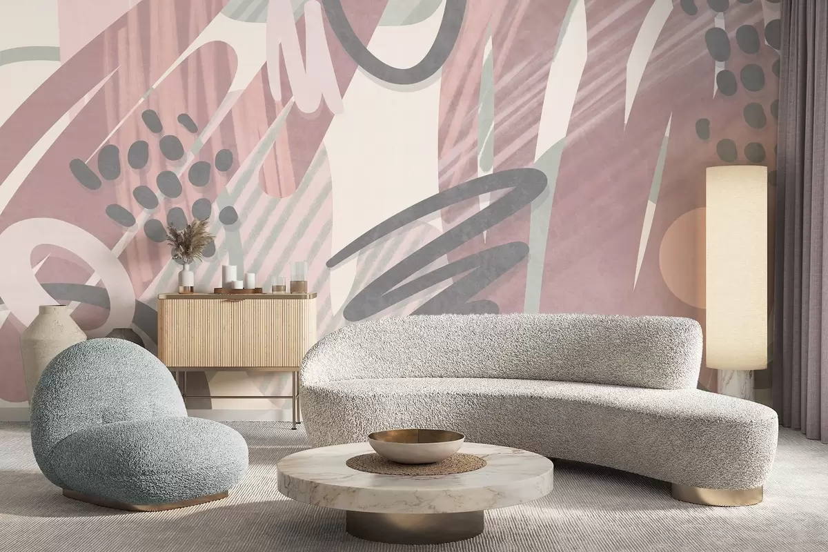 Zidne murale Apstraktni teksturirani otisak s organskim oblicima, šarama i točkicama u prigušenim pastelnim bojama br. w09774v1