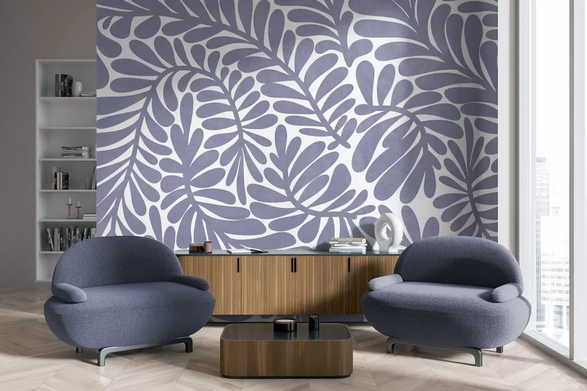 Zidne murale Stilizirano svijetloplavo lišće na svijetloj pozadini, teksturirana umjetnost br. w09775v1