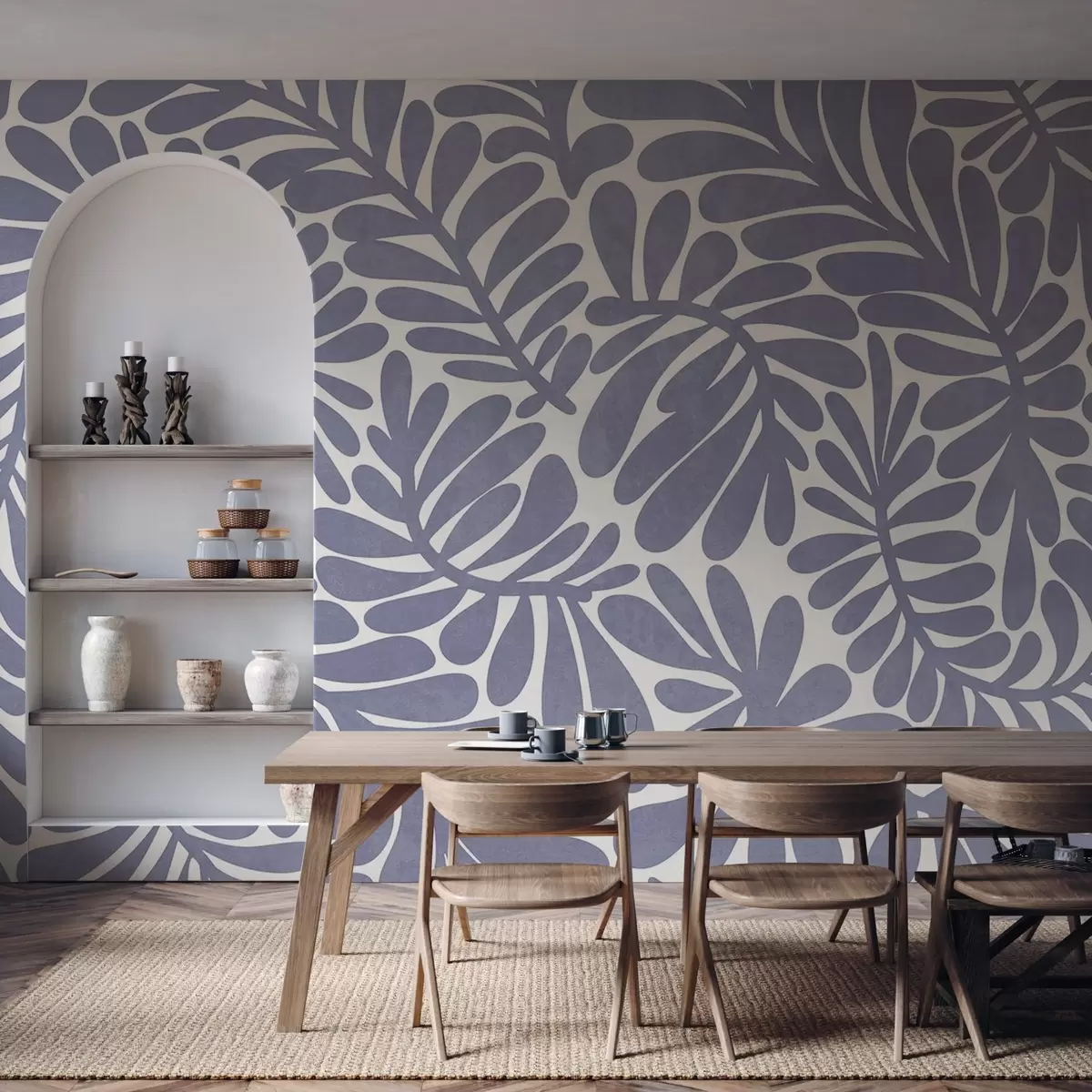 Zidne murale Stilizirano svijetloplavo lišće na svijetloj pozadini, teksturirana umjetnost br. w09775v1