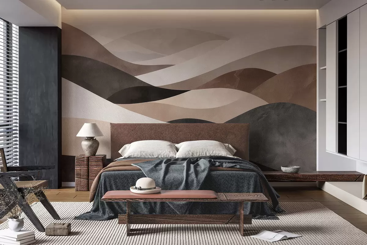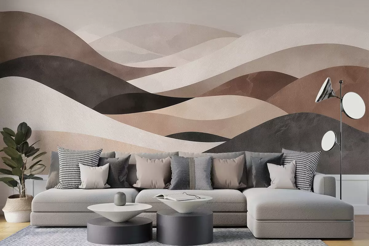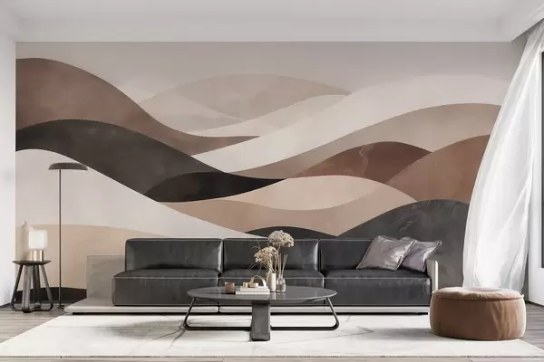 Zidne murale Apstraktni valovi u pješčano bež tonovima br. w09792
