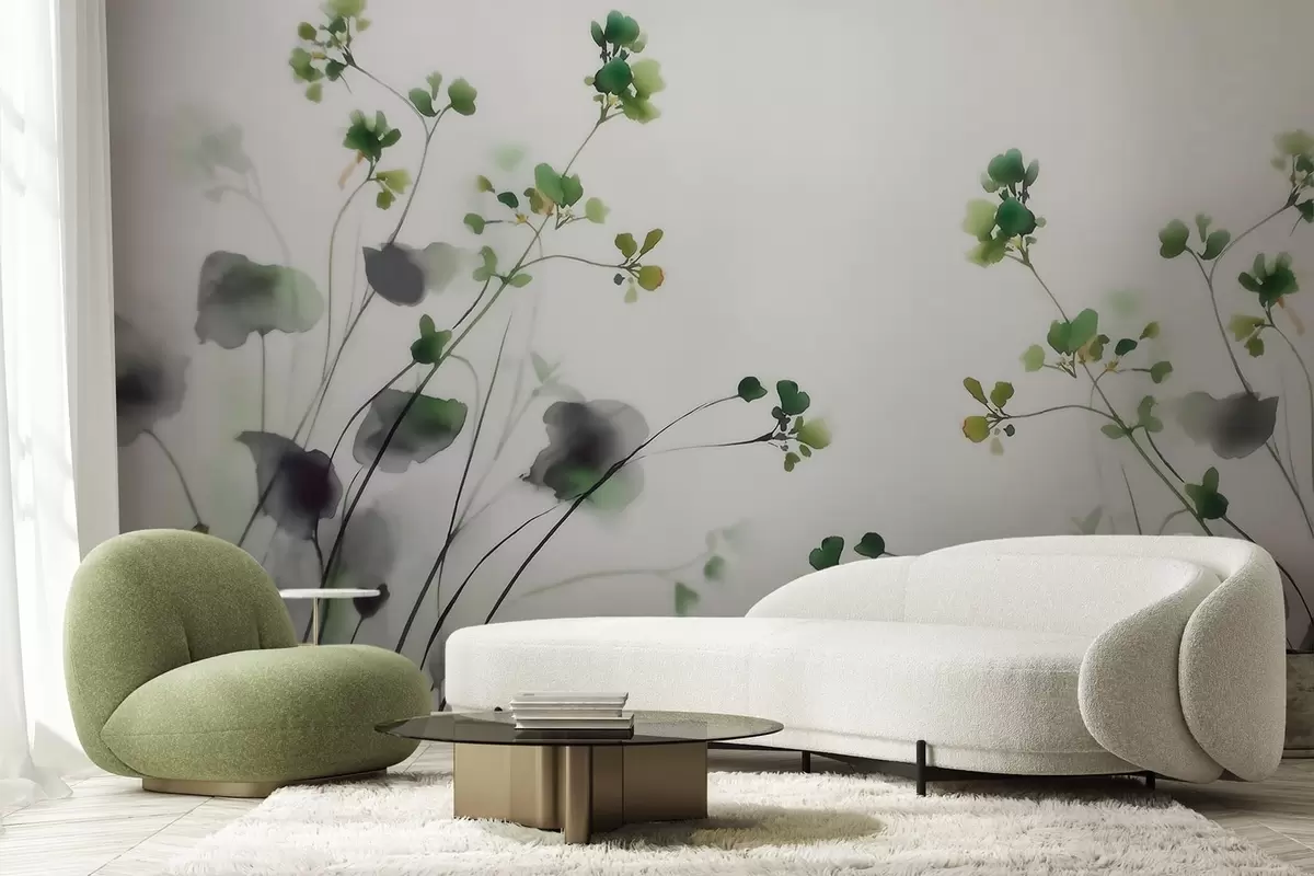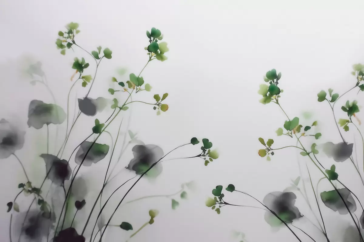Zidne murale Nježno divlje cvijeće i trava u stilu akvarela br. w09796