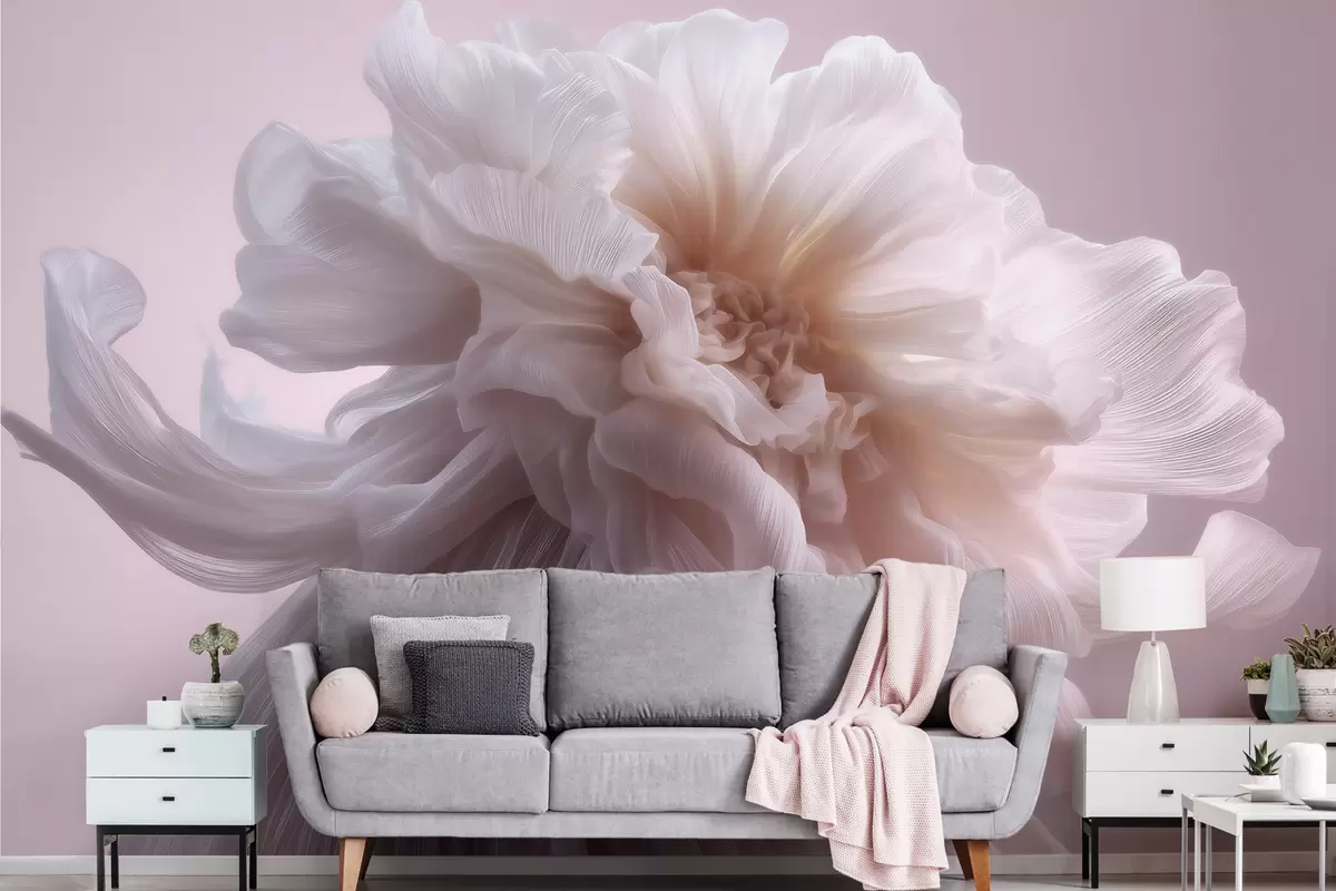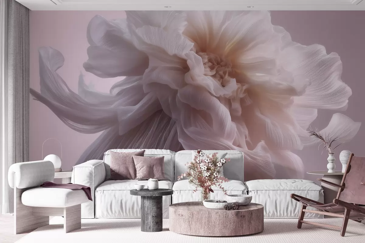Zidne murale Volumetrijski svileni cvijet u nježnim ružičastim i bež tonovima br. w09809