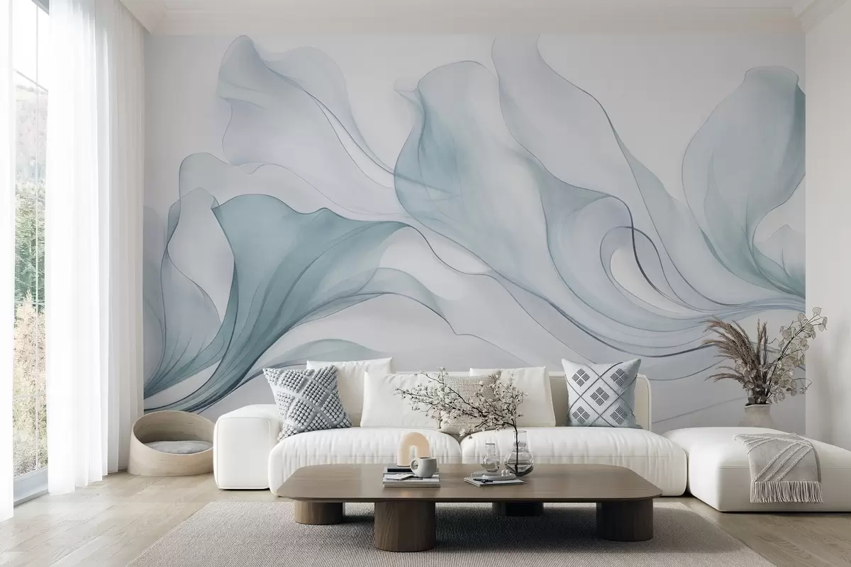 Zidne murale Apstraktna tekuća tekstura u nijansama plave s nježnim linijama br. w09815v1
