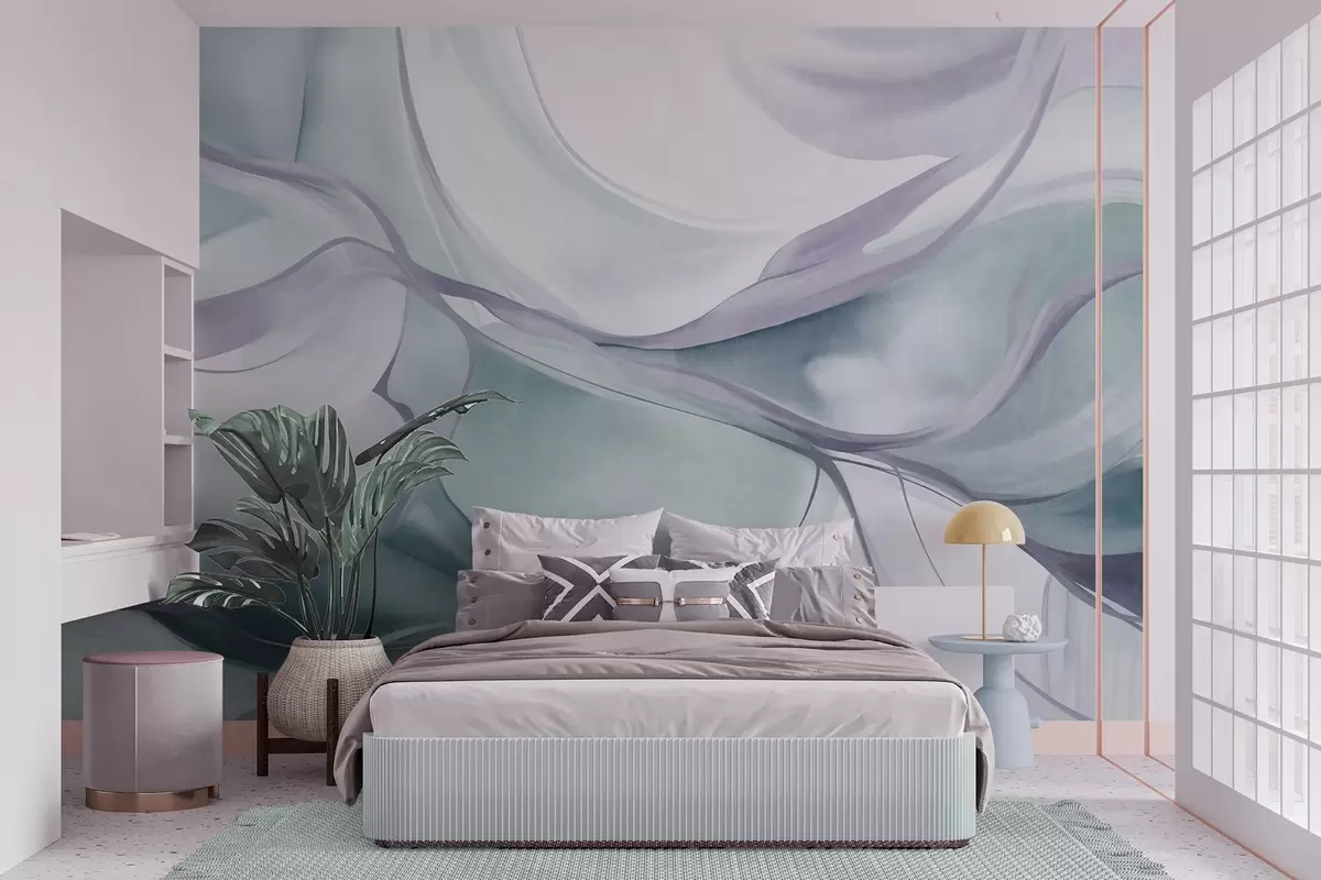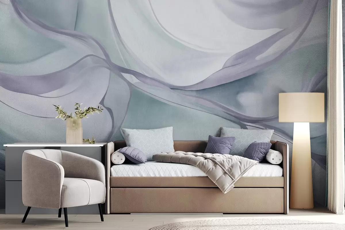 Zidne murale Apstraktni teksturirani tekući oblici u nijansama plave i sive s nježnim linijama br. w09818v1