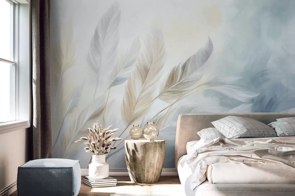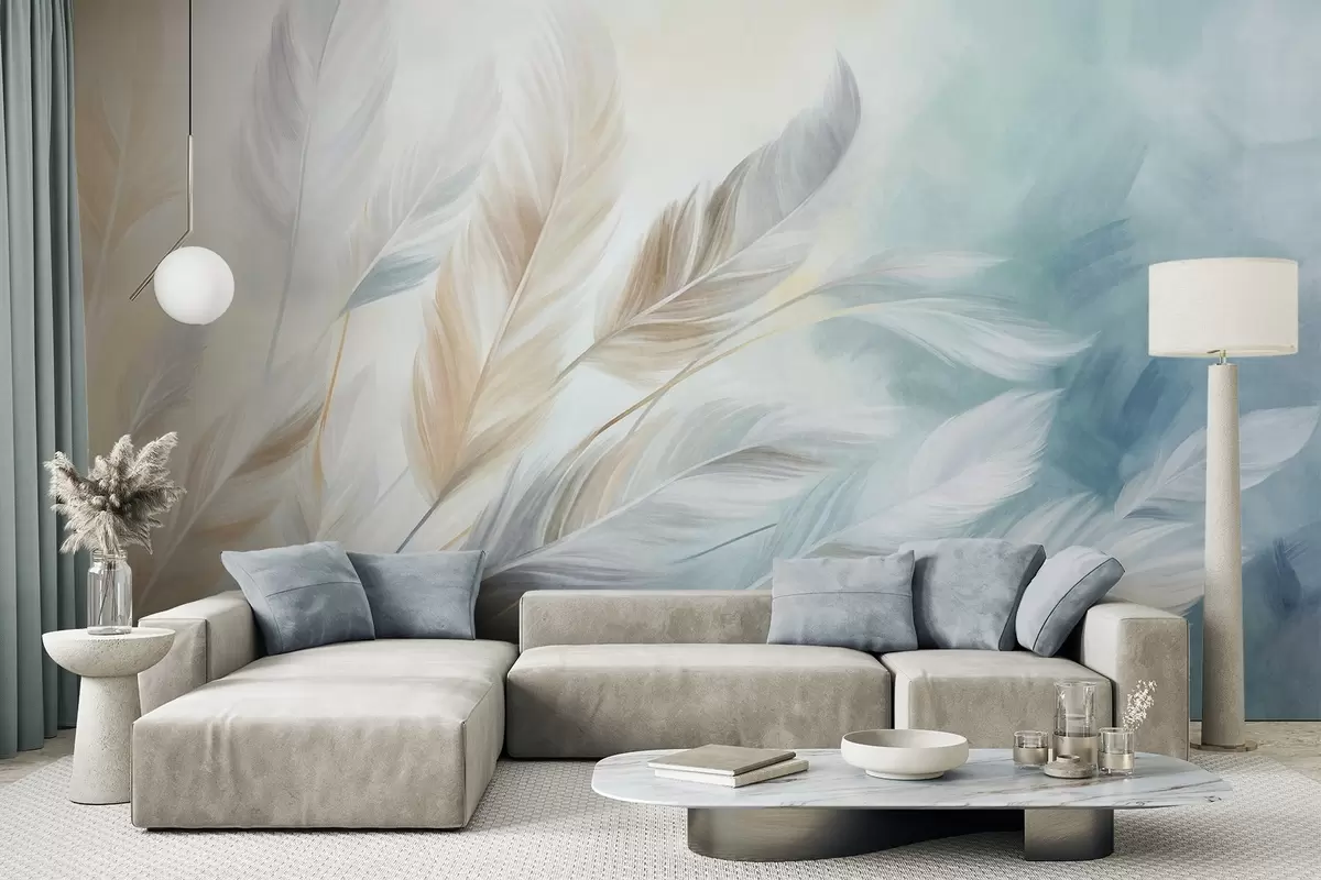 Zidne murale Teksturirano pastelno perje s mekim, tankim rubovima, na pozadini u akvarelnom stilu br. w09833