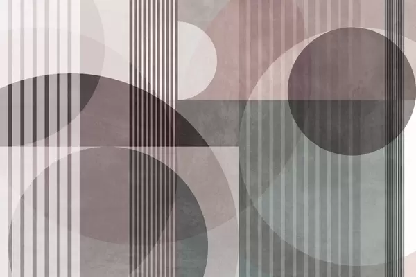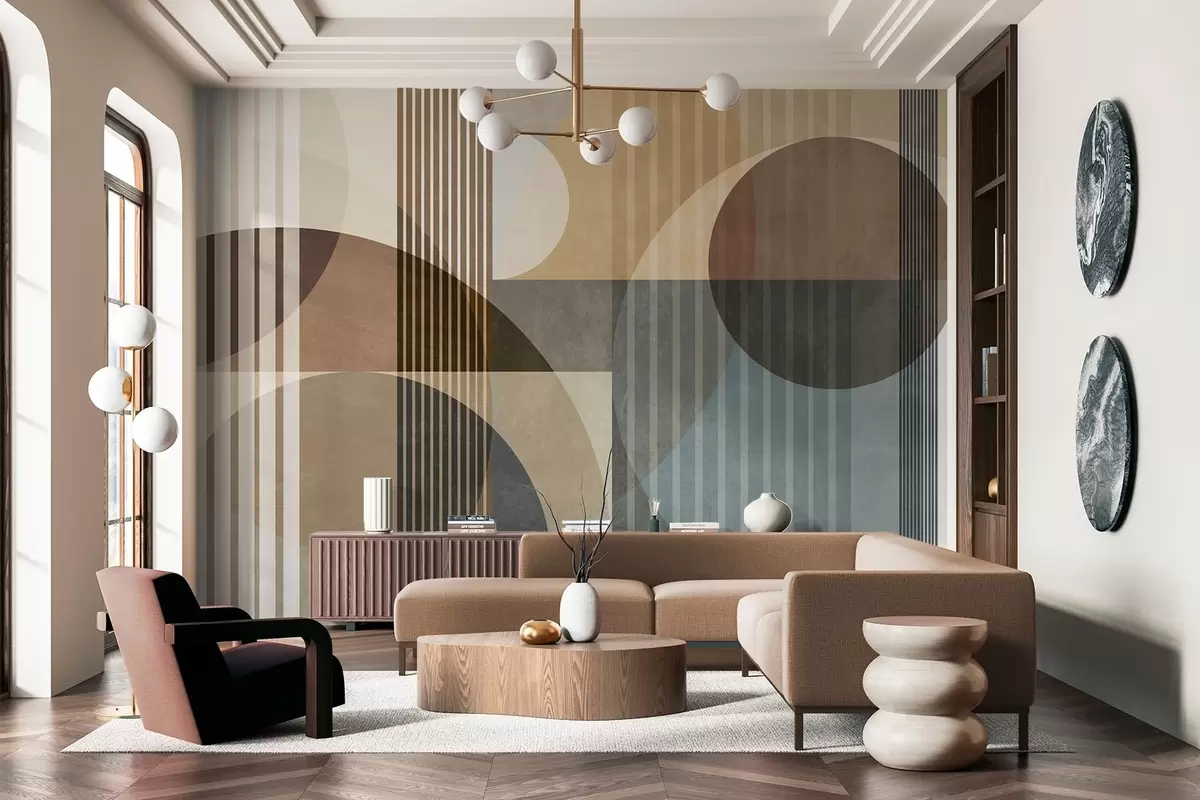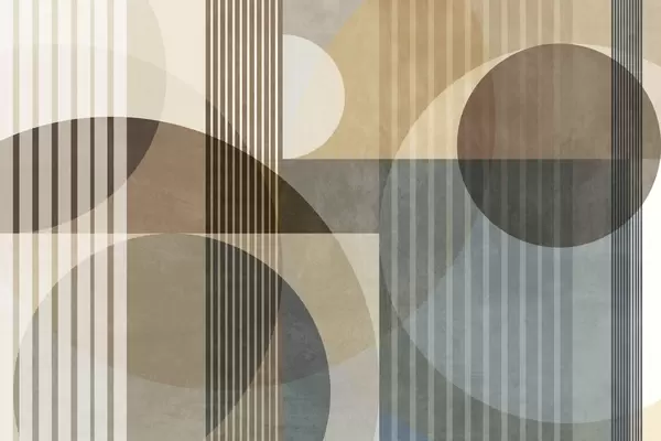Zidne murale Apstraktni geometrijski oblici s krugovima i linijama, prigušeni zemljani tonovi, teksturirana, slojevita kompozicija br. w09834