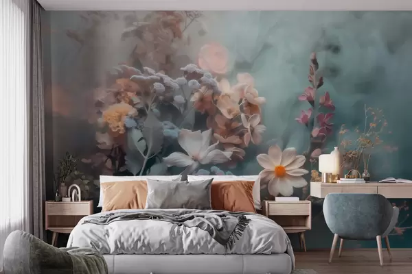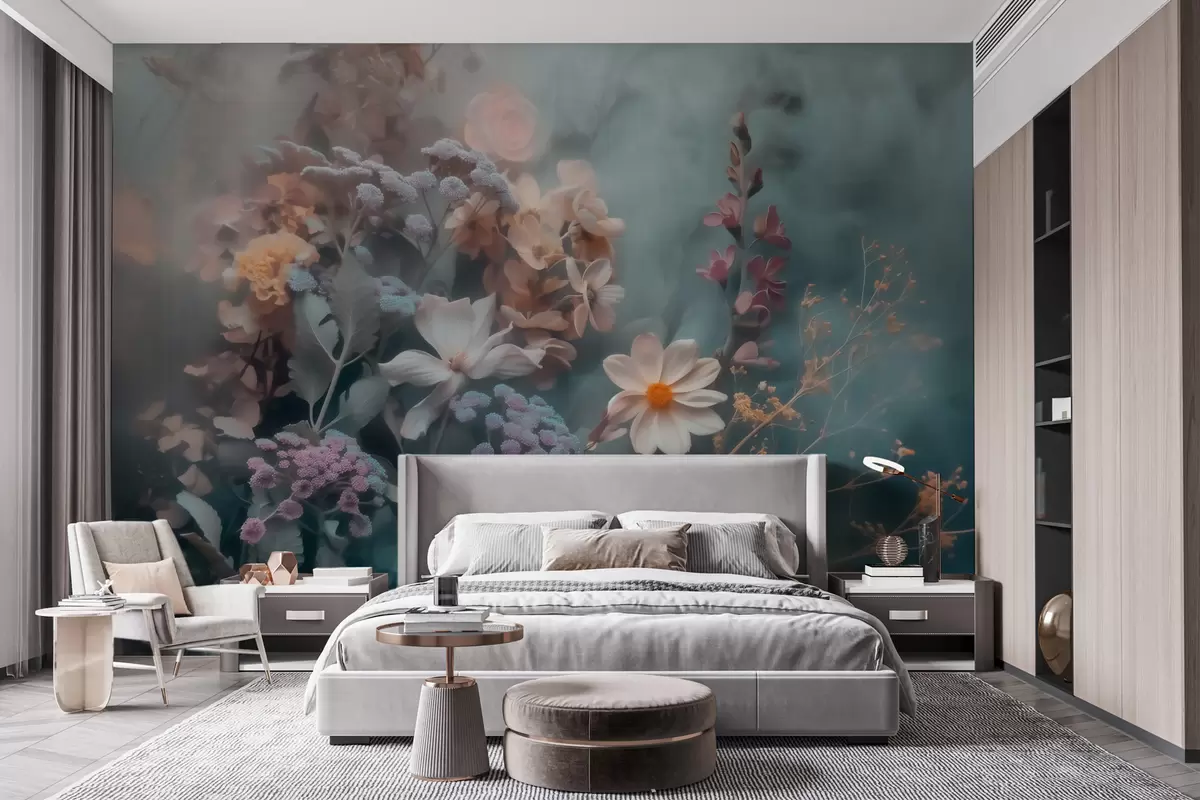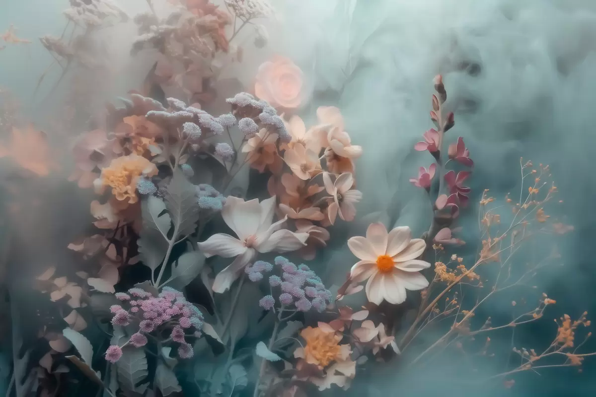 Zidne murale Sanjiva kompozicija divljeg cvijeća u laganoj izmaglici pastelnih tonova br. w09846