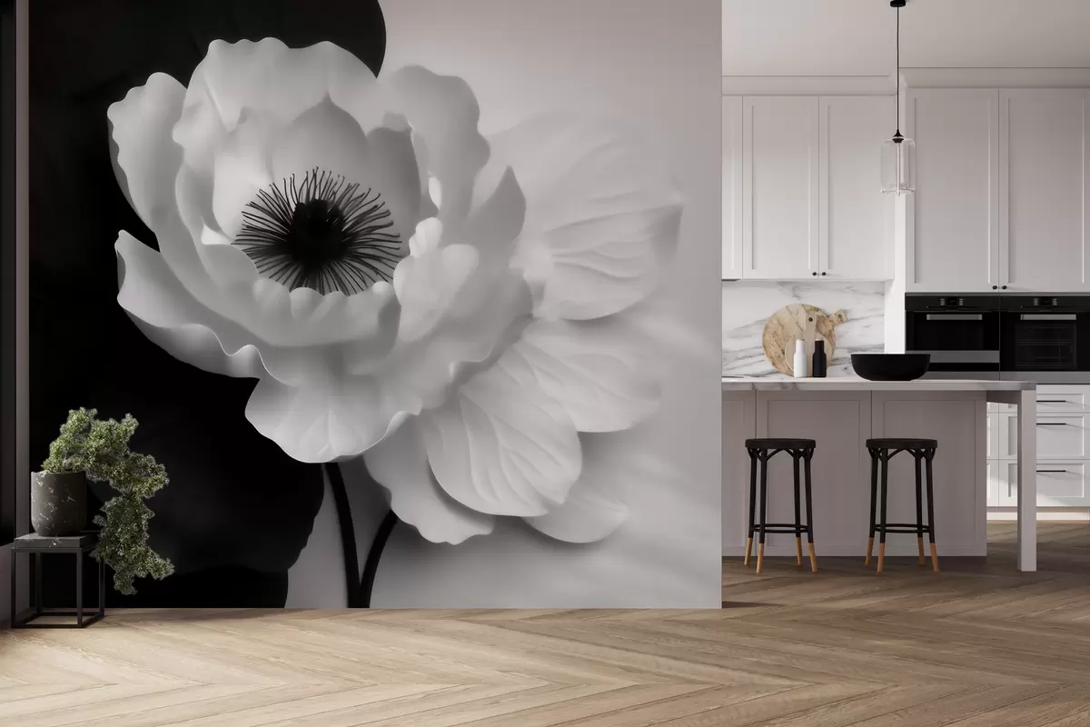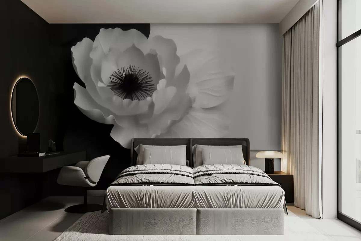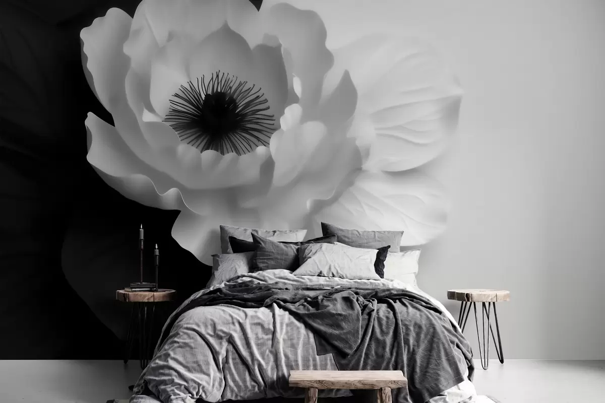 Zidne murale Kontrastni bijeli cvijet s tamnim središtem na crno-bijeloj pozadini br. w09852