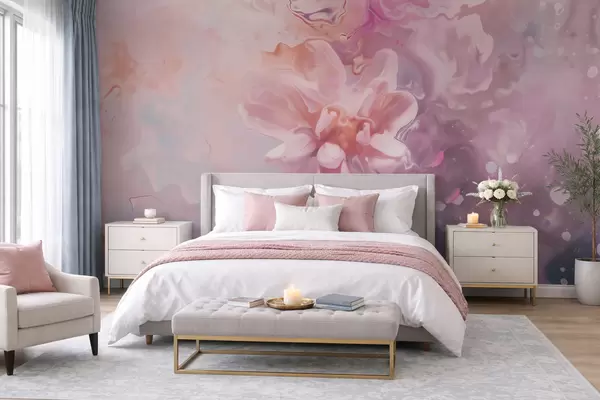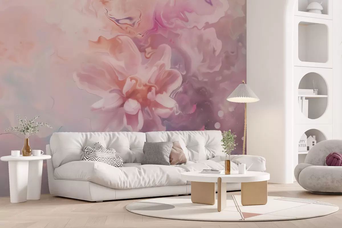 Zidne murale Apstraktna kompozicija s cvijetom i nježno ružičastim premazima u stilu akvarela br. w09859
