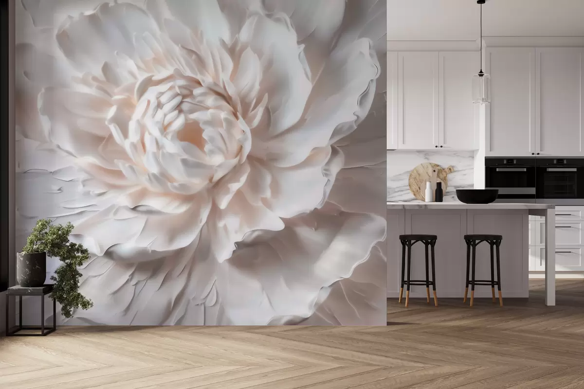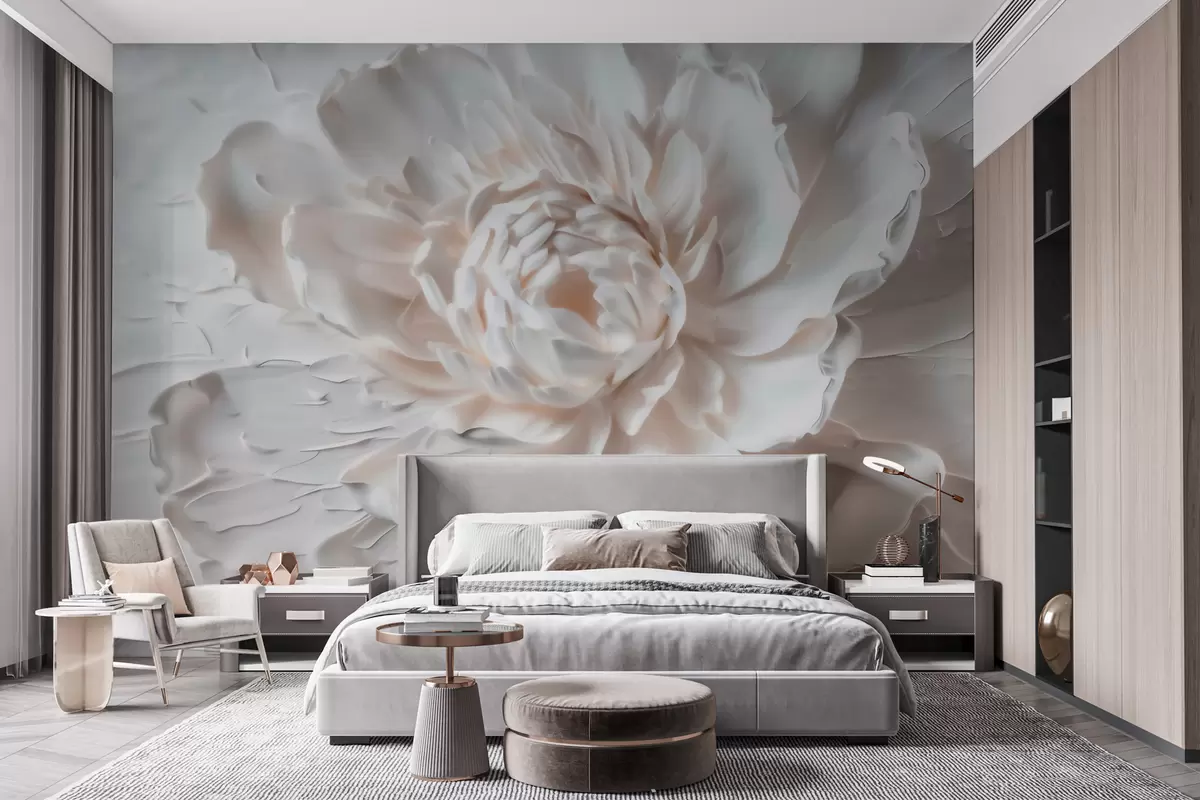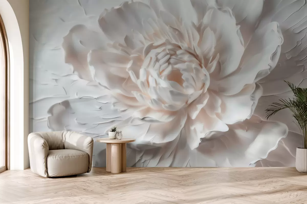 Zidne murale Nježan cvijet u bareljefu s glatkim laticama u svijetlim tonovima br. w09861