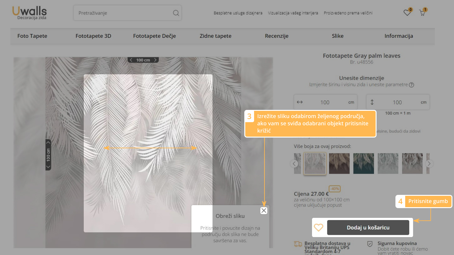 3. Izrežite sliku odabirom željenog područja, ako vam se sviđa odabrani objekt pritisnite križić