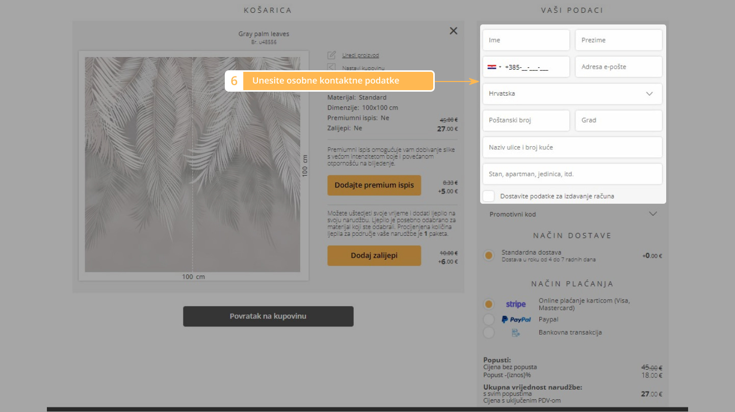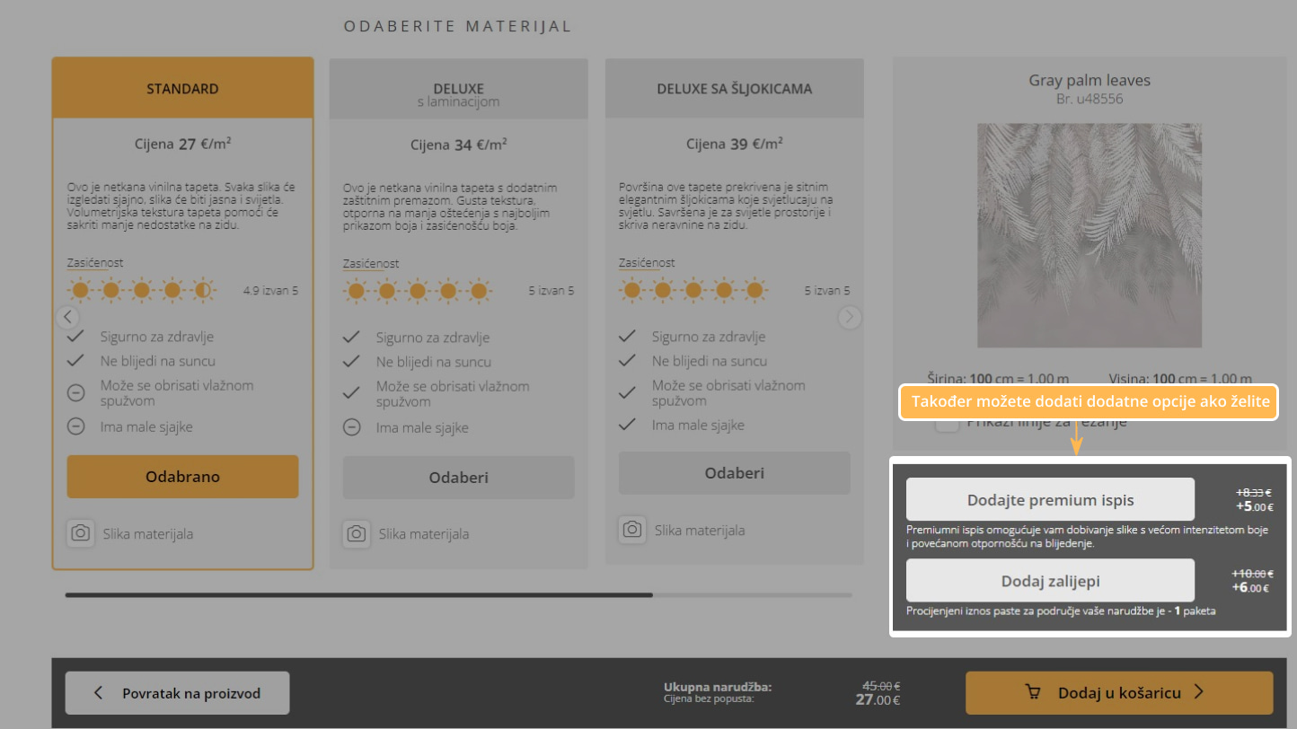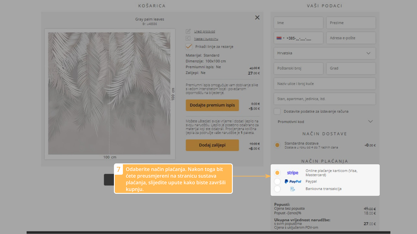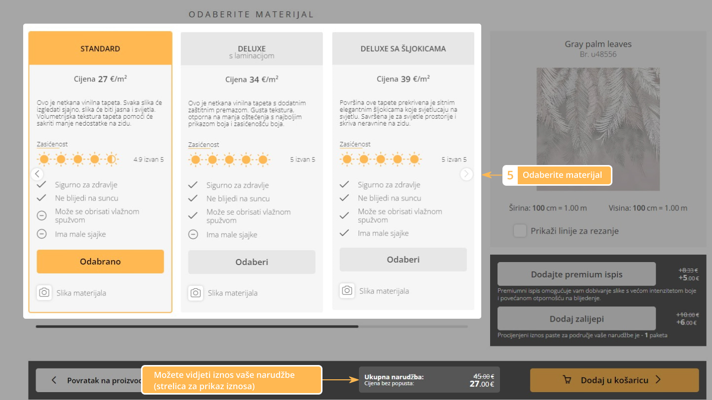 Možete vidjeti iznos vaše narudžbe (strelica za prikaz iznosa)