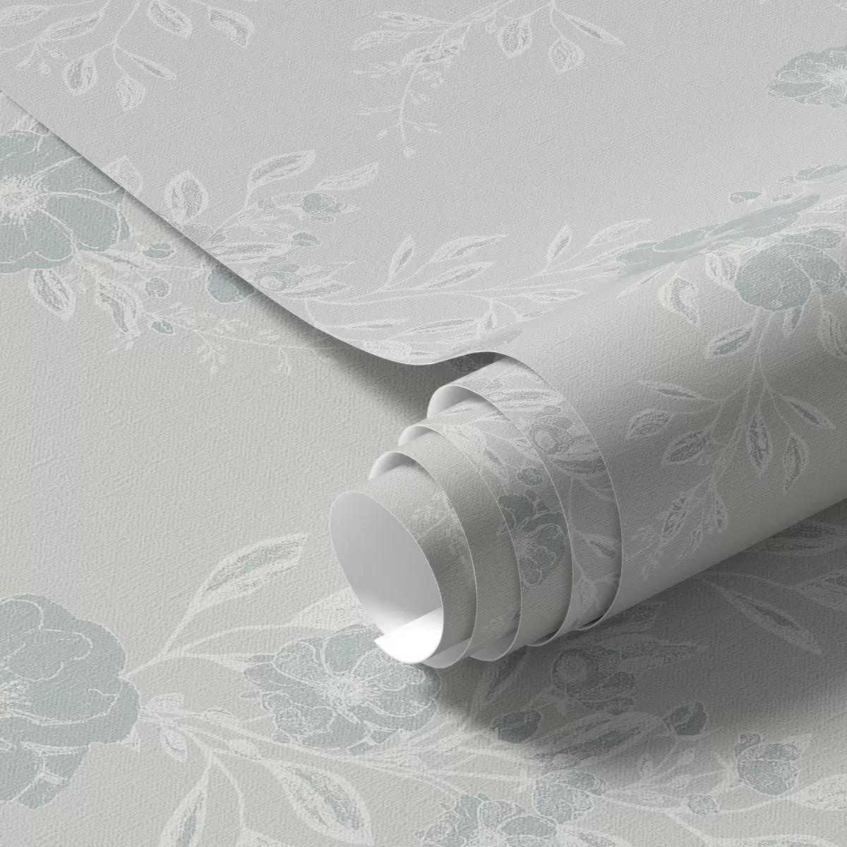 Tapeta Cvjetovi sa svijetlim lišćem na plavoj pozadini br. a00006v2