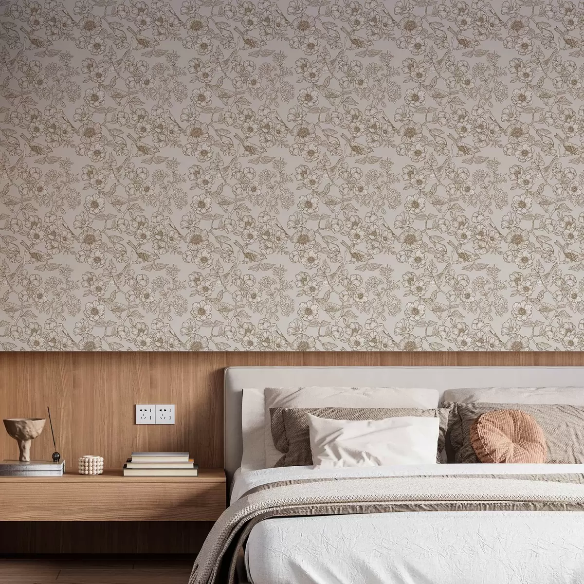 Tapeta Naslikane ptice na granama i cvijeću br. a00017