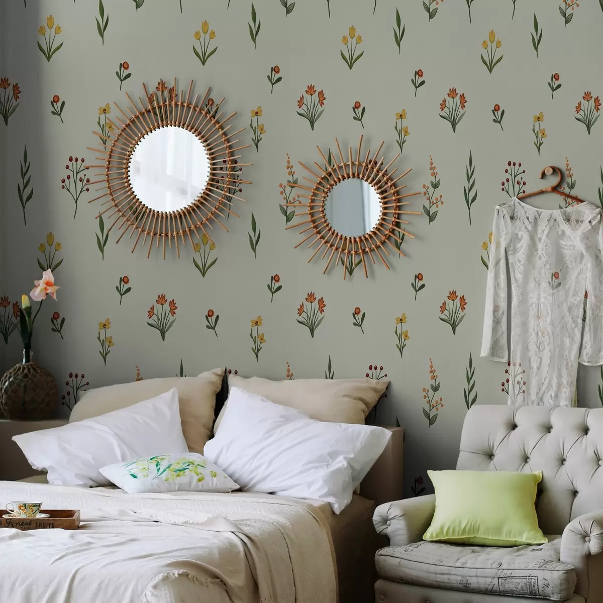 Tapeta Minimalistički cvjetovi na svijetlozelenoj pozadini br. a00037