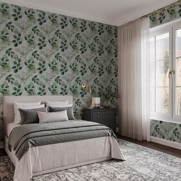 Tapeta Jesenje lišće u stilu akvarela u zelenim tonovima br. a00048v1