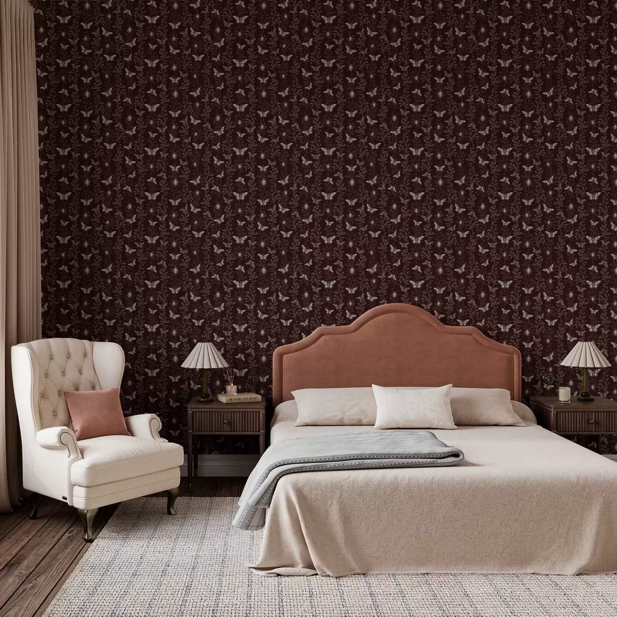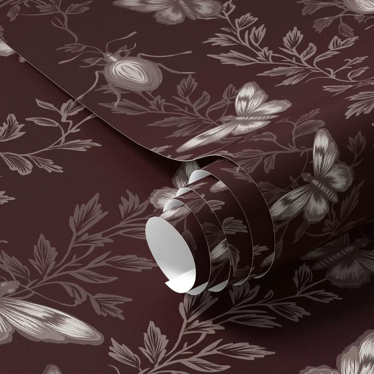 Tapeta Kompozicija s leptirima, lišćem i kukcima na tamnoj pozadini br. a00073v1