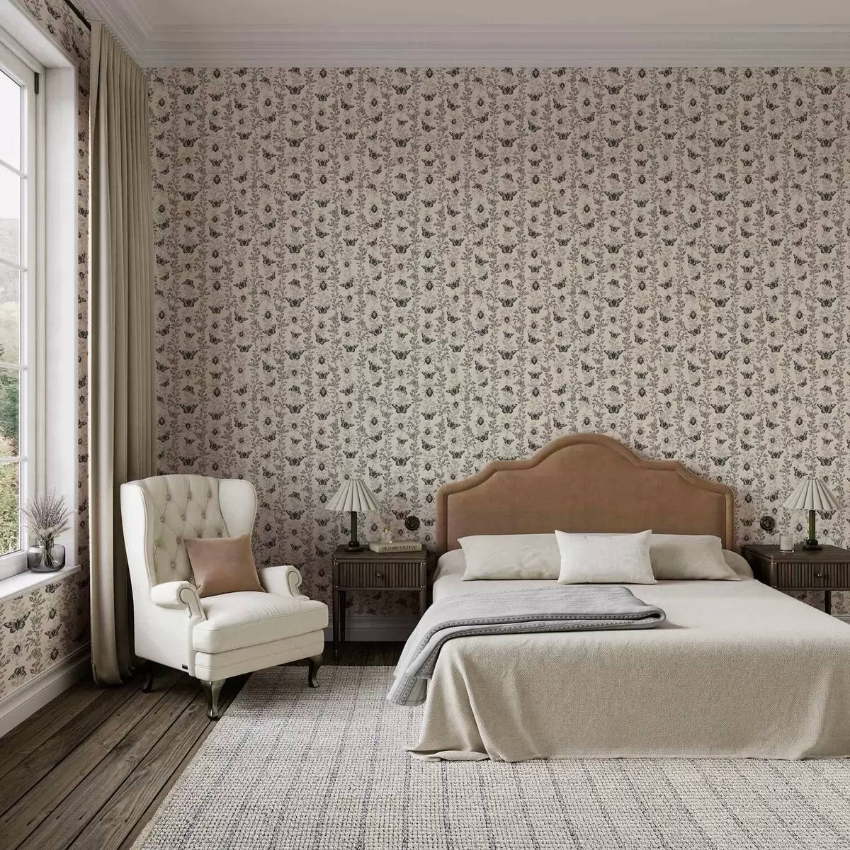 Tapeta Kompozicija s leptirima, lišćem i kukcima na svijetloj pozadini br. a00073v2
