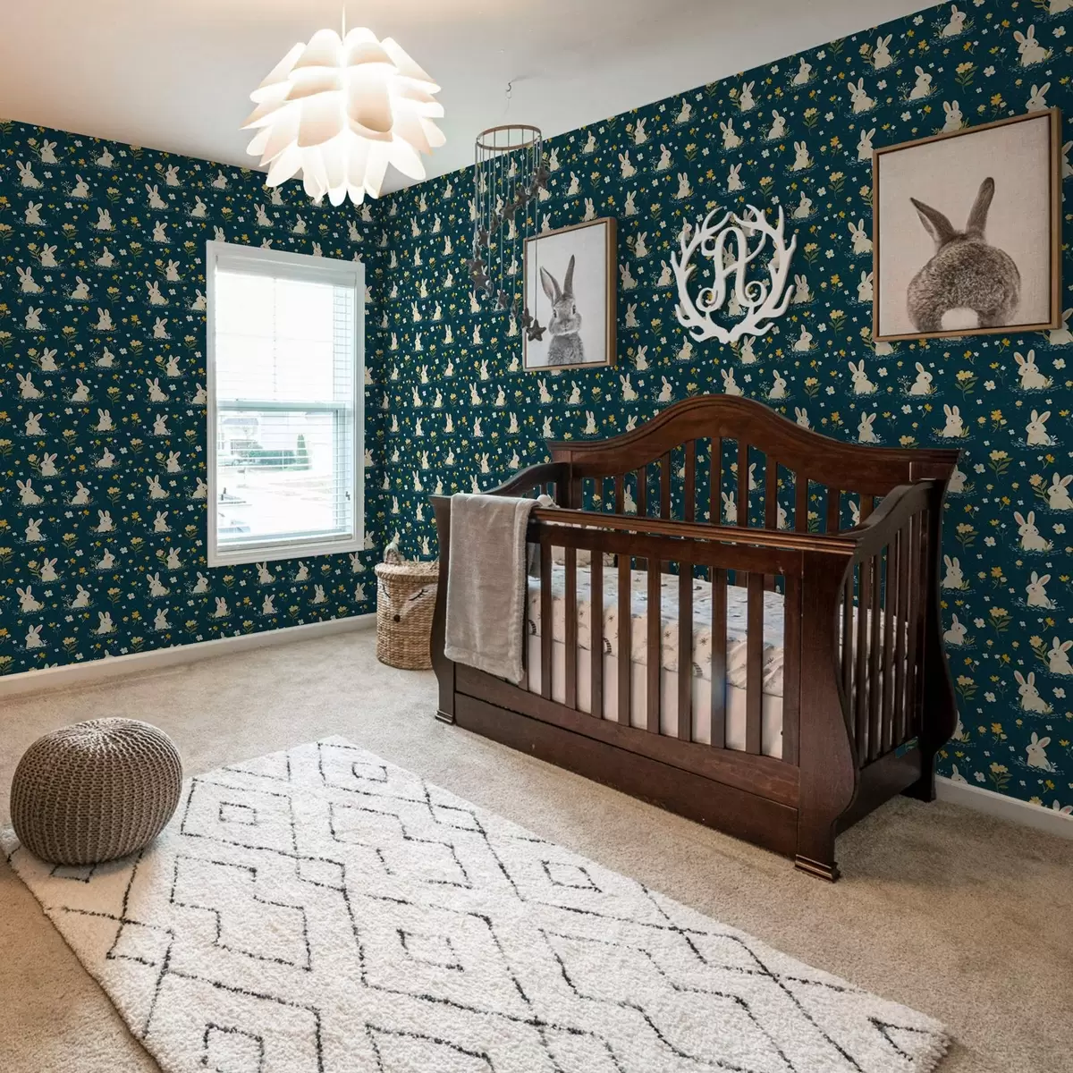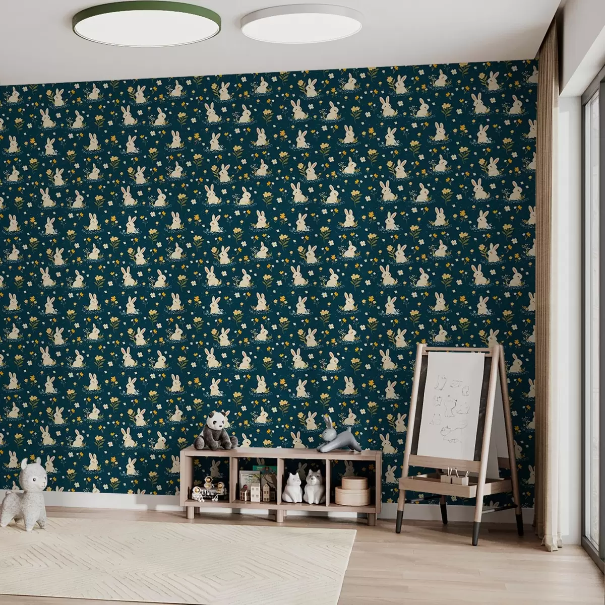 Tapeta Zečevi u travi i cvijeću na tamnoj pozadini br. a00080