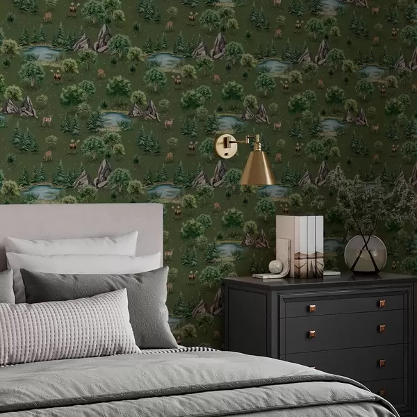 Tapeta Jeleni uz jezero s drvećem i kamenjem br. a00086