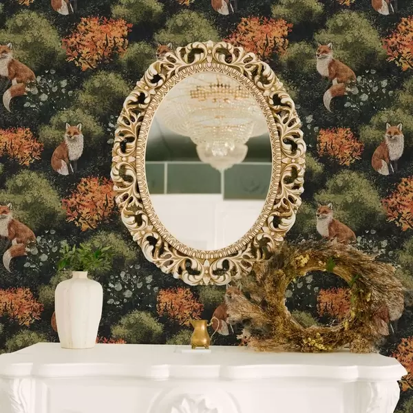 Tapeta Lisičarke u šumi s jesenskim grmljem na tamnoj pozadini br. a00101