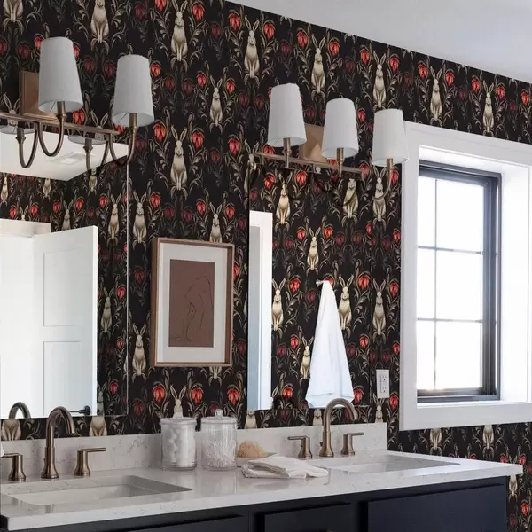 Tapeta Zec i crveno cvijeće na tamnoj pozadini br. a00102