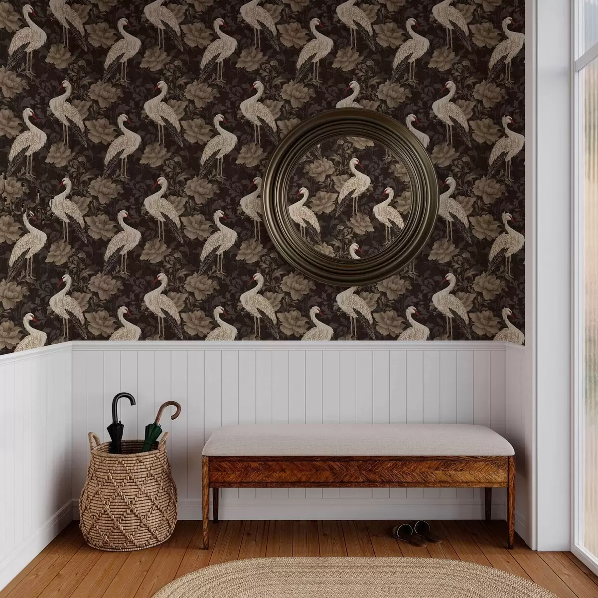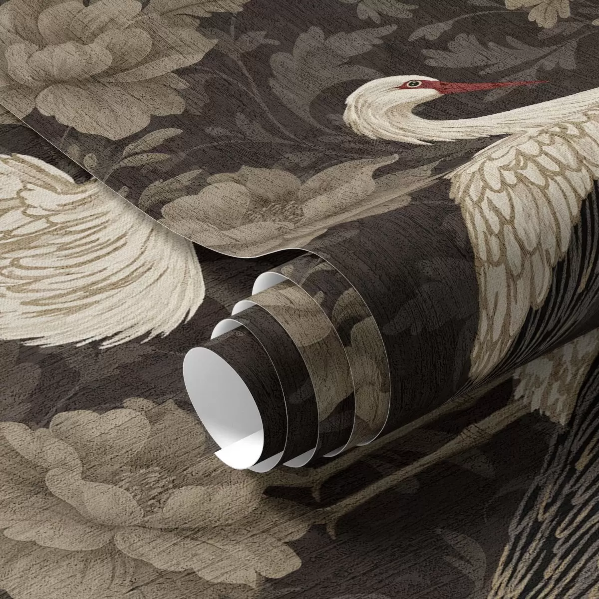 Tapeta Ždralovi među velikim cvjetovima u klasičnoj pastelnoj paleti br. a00108