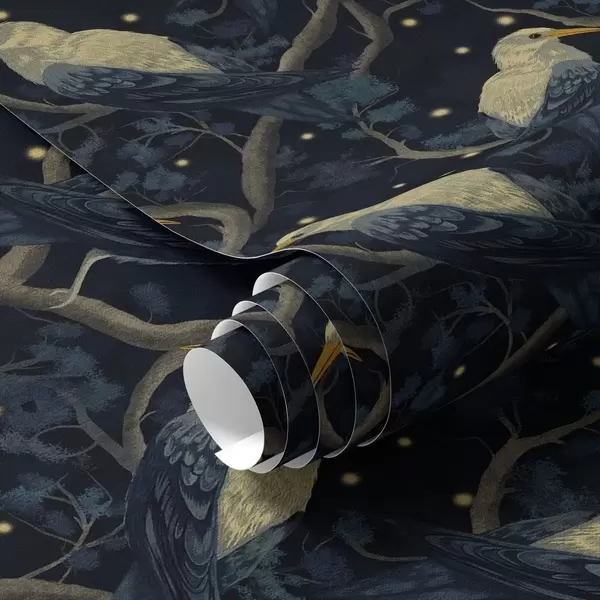 Tapeta Noćne ptice na granama i zvijezde na tamnoplavoj pozadini br. a00109v1