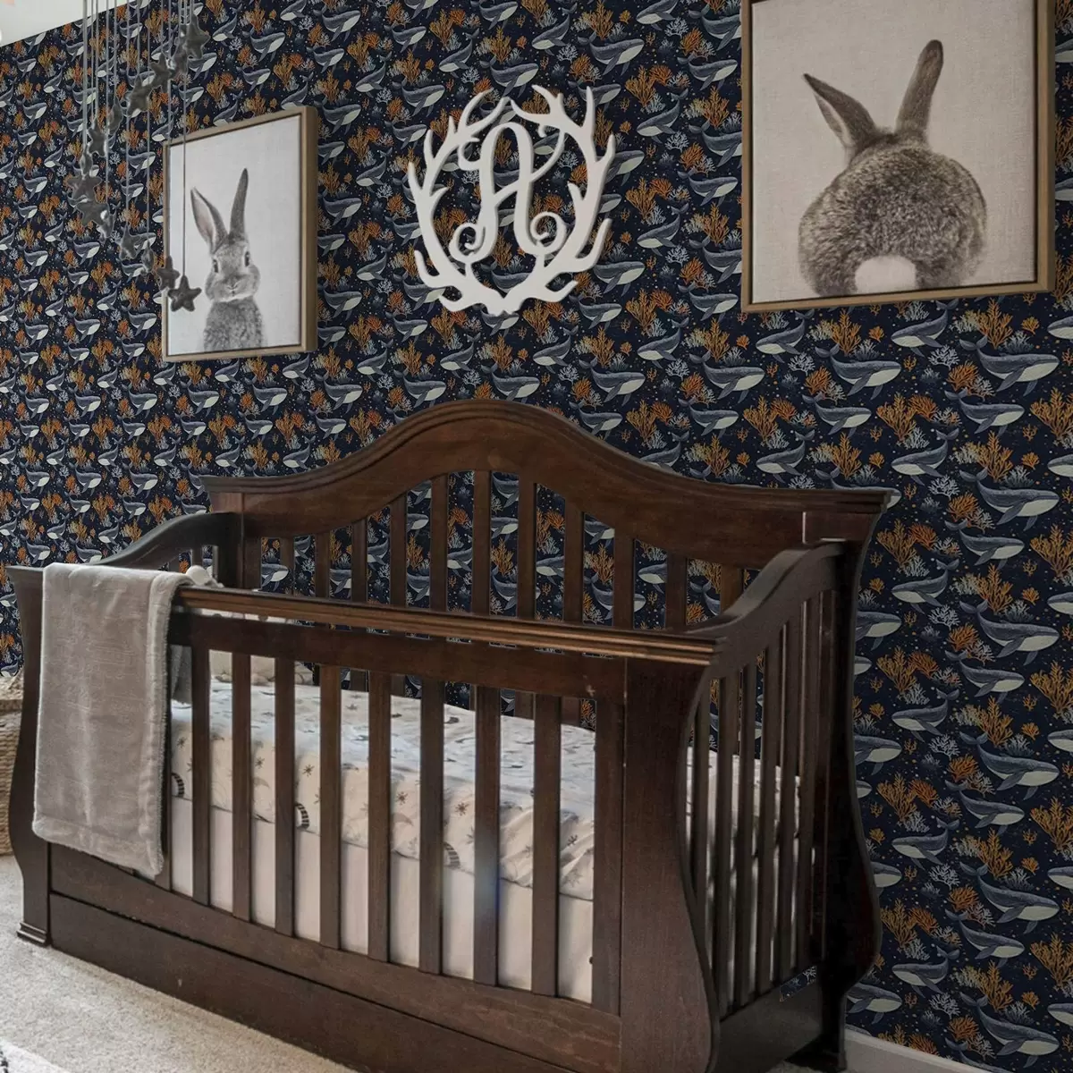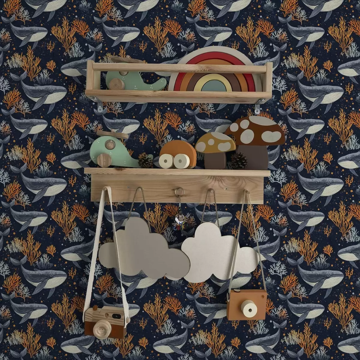 Tapeta Morski kitovi i koralji na tamnoj pozadini br. a00116