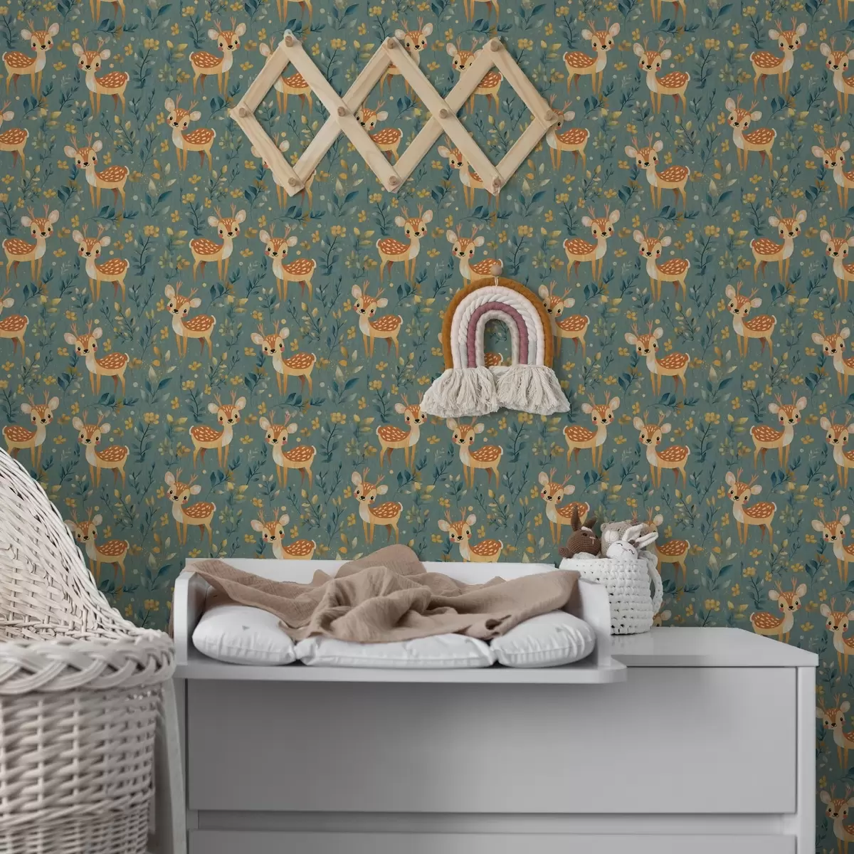 Tapeta Beba jelena u šumi sa žutim lišćem br. a00124v1