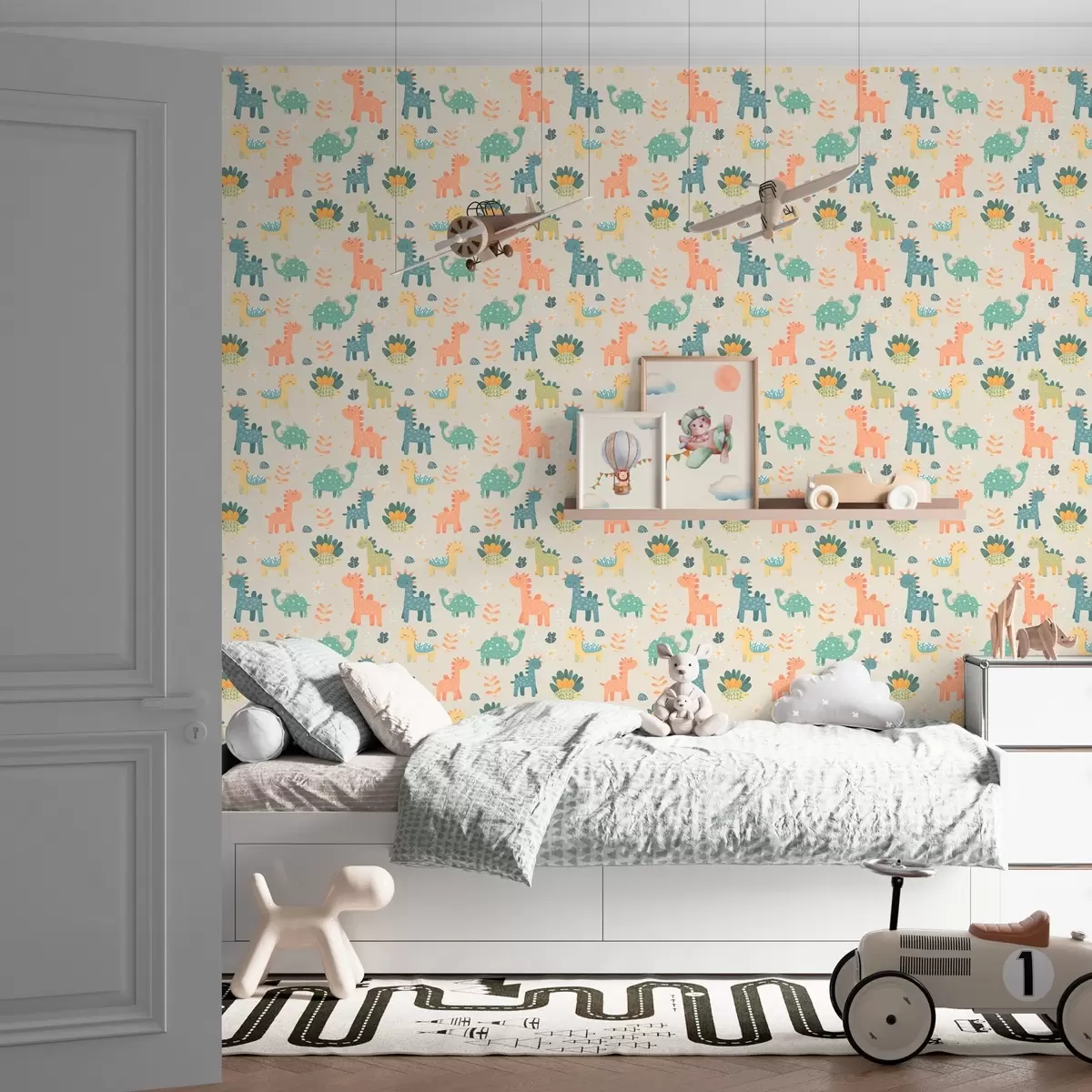 Tapeta Dječji dinosauri u pastelnim bojama na svijetloj pozadini br. a00125