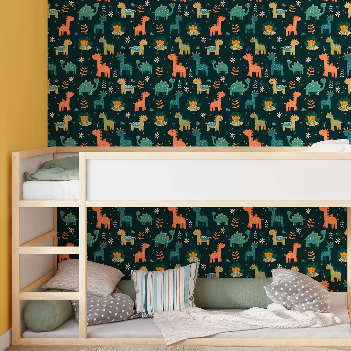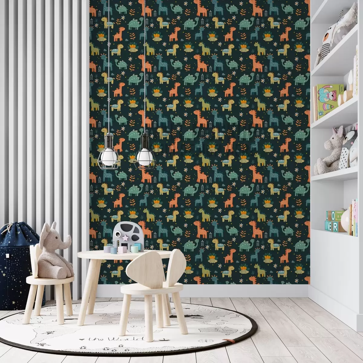 Tapeta Smiješni dinosauri u pastelnim bojama na tamnoj pozadini br. a00125v2