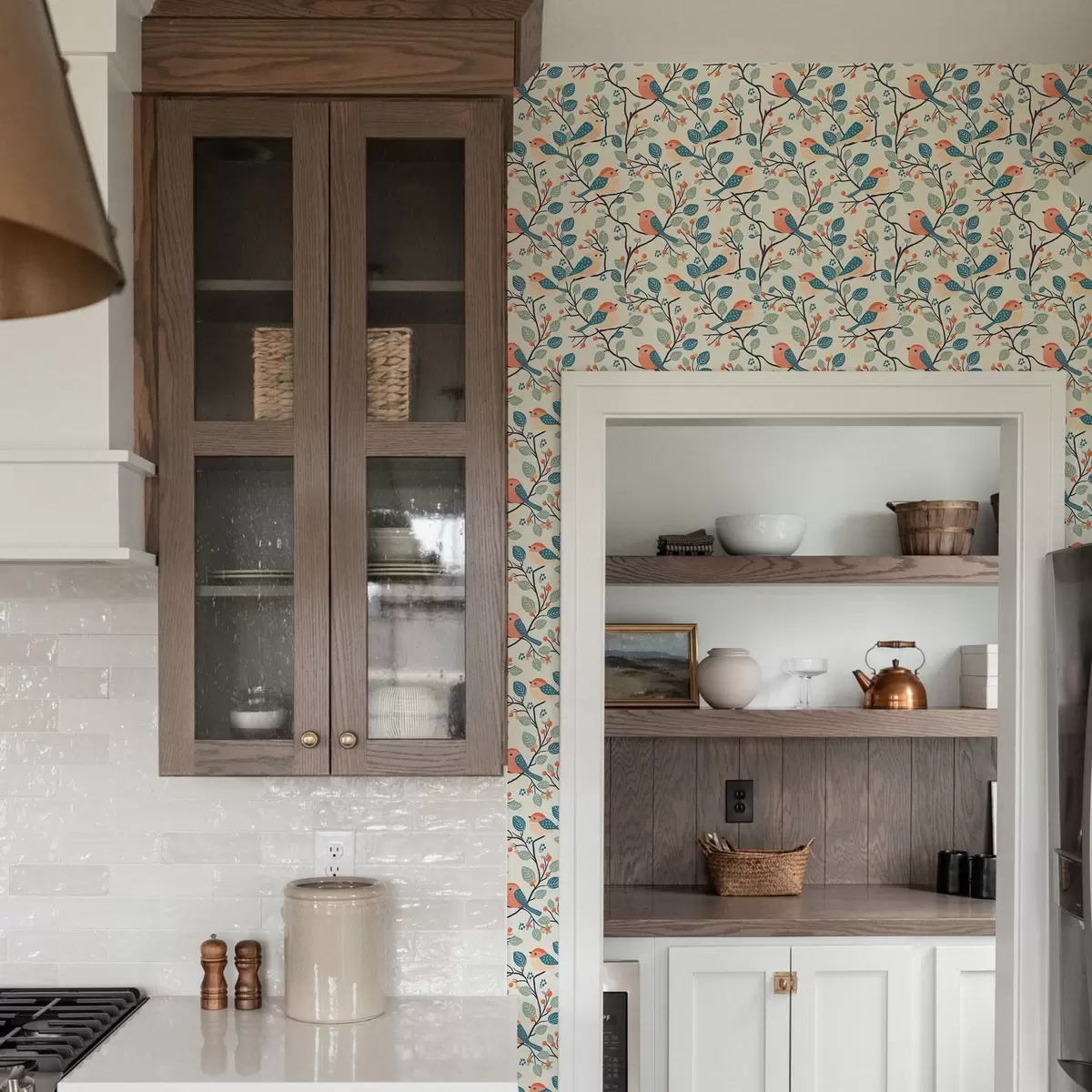 Tapeta Ptice na granama i bobice u toplim bojama br. a00128v1