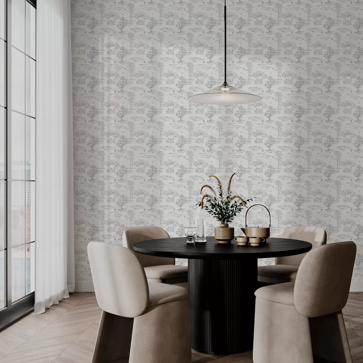 Tapeta Pejzaž s konjima u sivo-bijelom stilu br. a00133v2