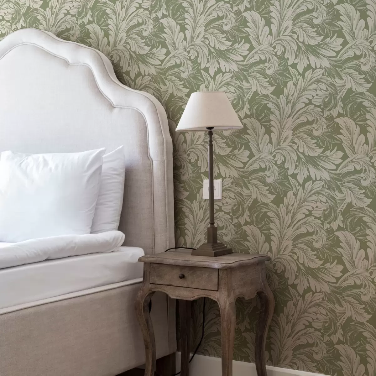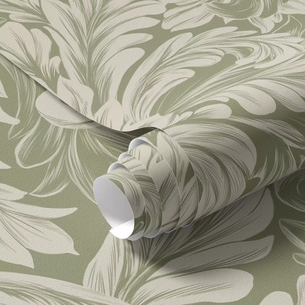 Tapeta Barok s krem lišćem na zelenoj pozadini br. a00135