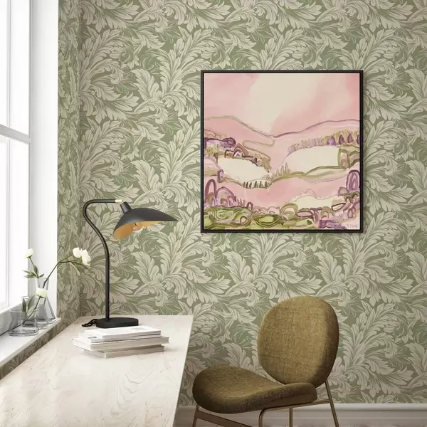 Tapeta Barok s krem lišćem na zelenoj pozadini br. a00135