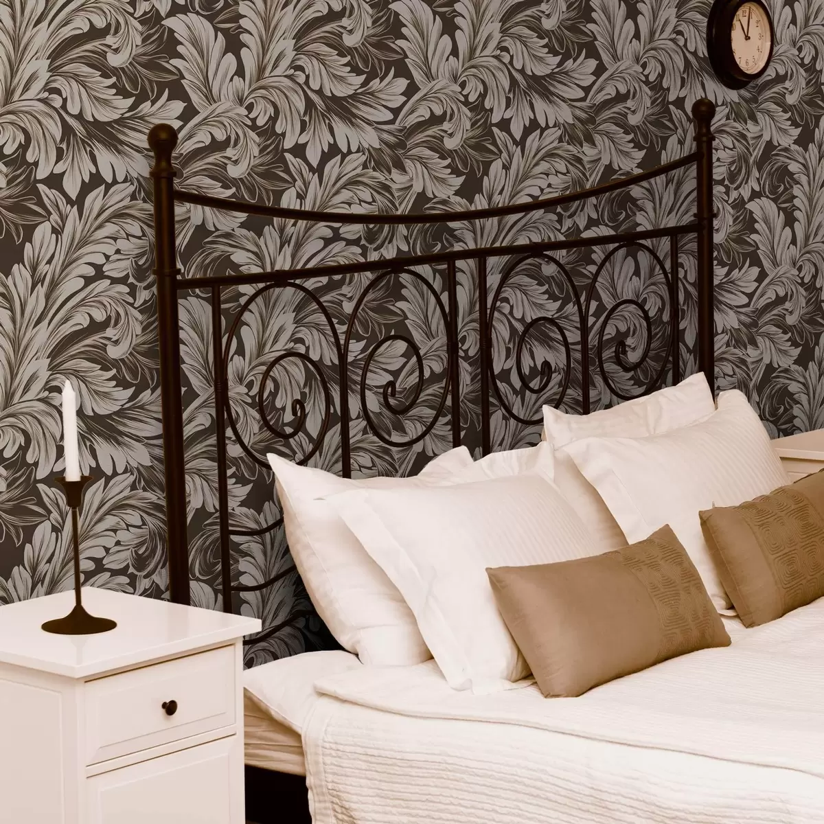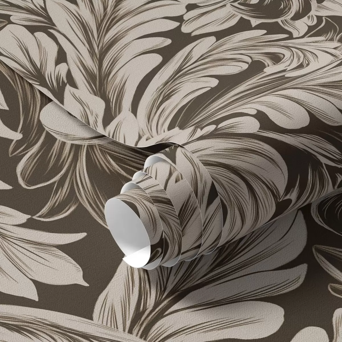 Tapeta Barokni uzorak s lišćem na tamnoj pozadini br. a00135v5