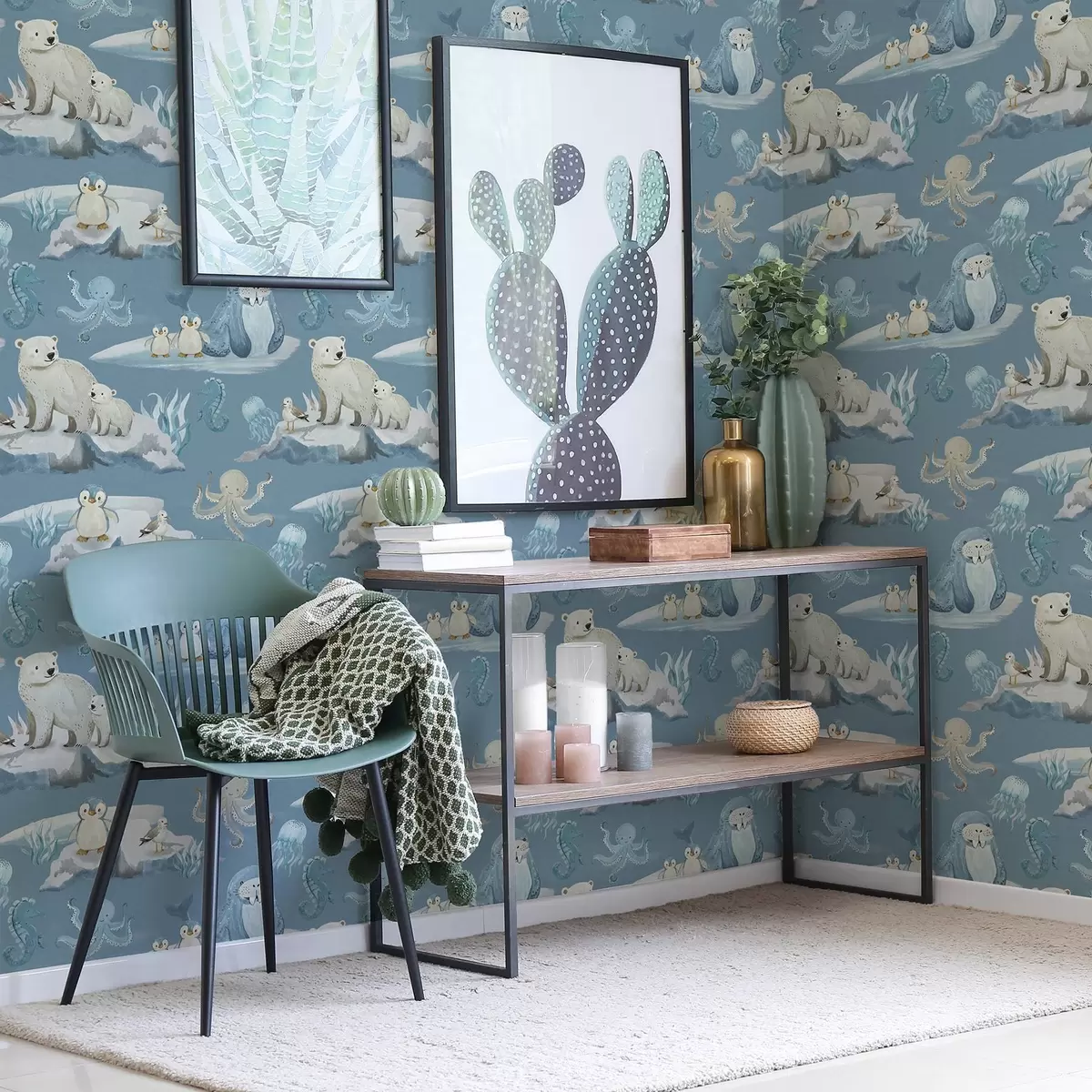 Tapeta Arktičke životinje u akvarelnom stilu za dječju sobu br. a00137