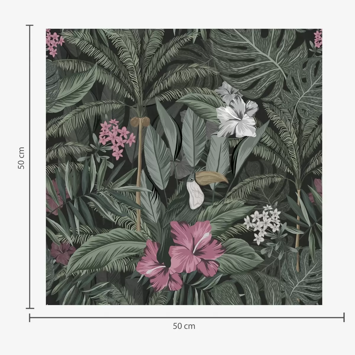 Tapeta Tropsko lišće i ptica na tamnoj pozadini br. a00140