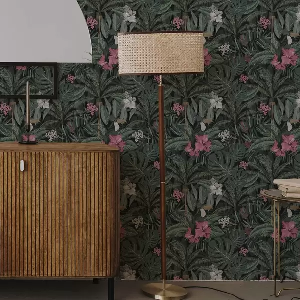 Tapeta Tropsko lišće i ptica na tamnoj pozadini br. a00140