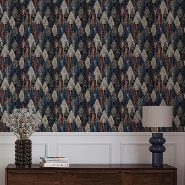 Tapeta Apstraktna šuma s drvećem na tamnoplavoj pozadini br. a00150