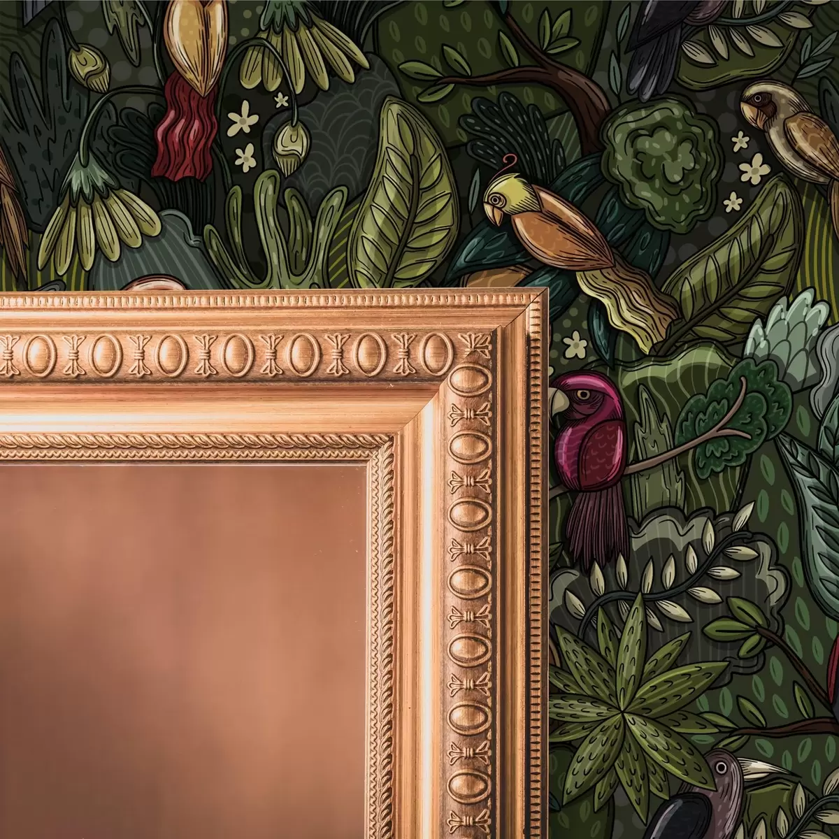 Tapeta Egzotične ptice u džungli u stilu gravure br. a00157