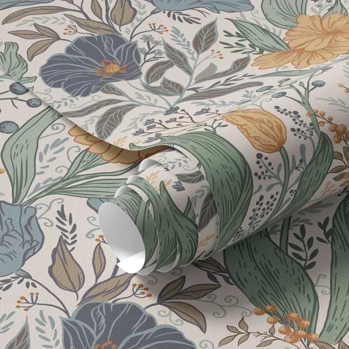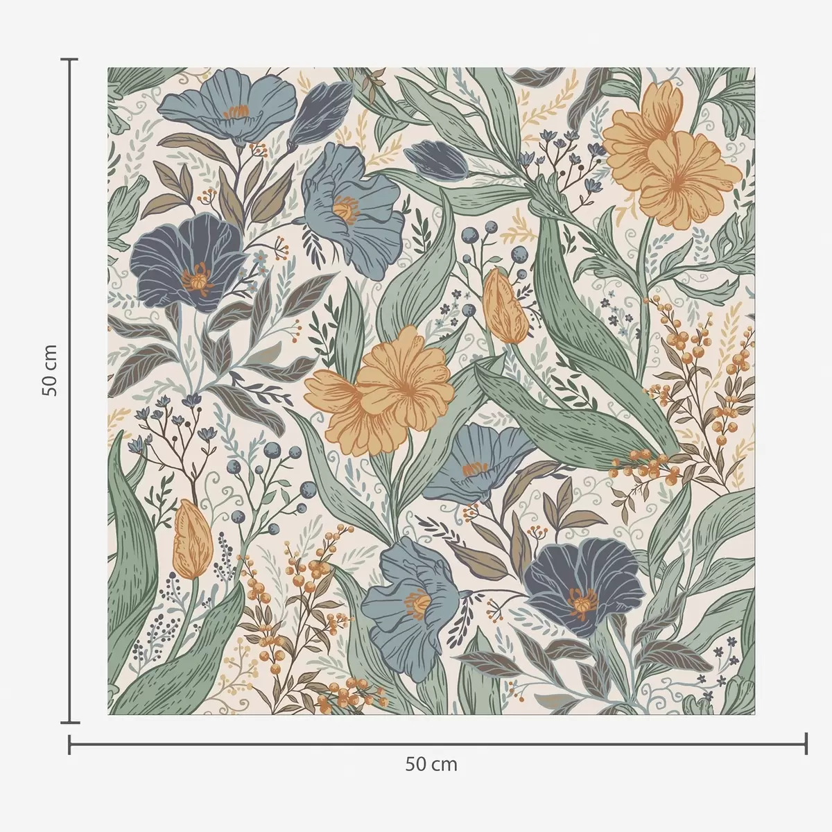 Tapeta Ručno crtana ilustracija livadnog cvijeća u toplim bojama br. a00180