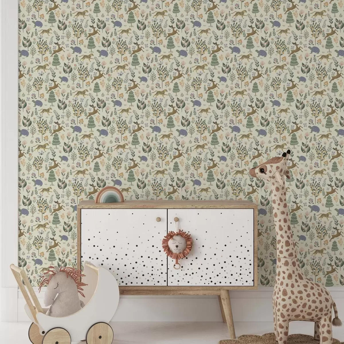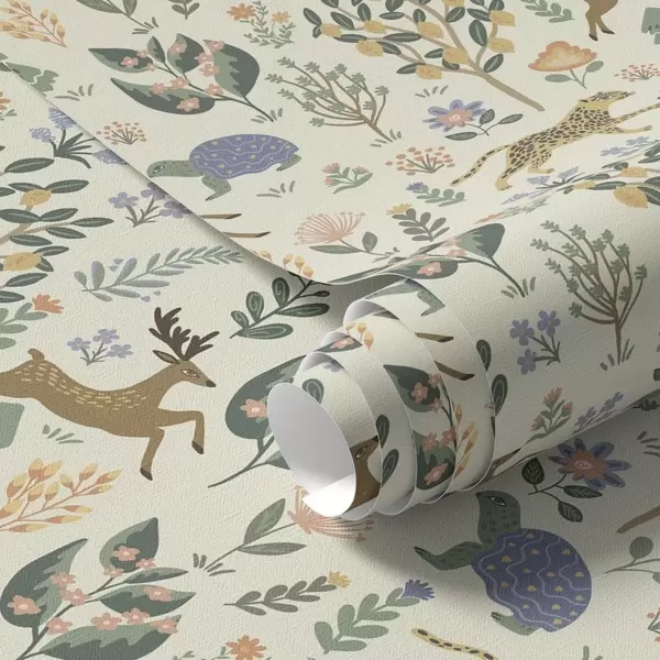 Tapeta Retro ilustracija s leopardima, drvećem i jelenima br. a00184