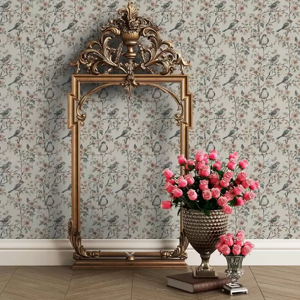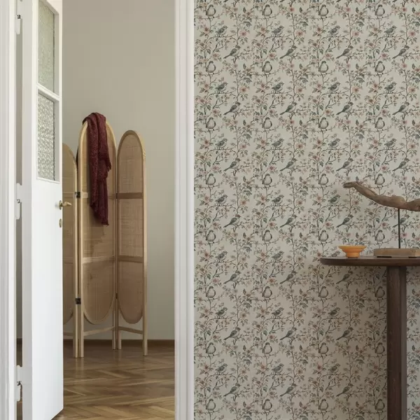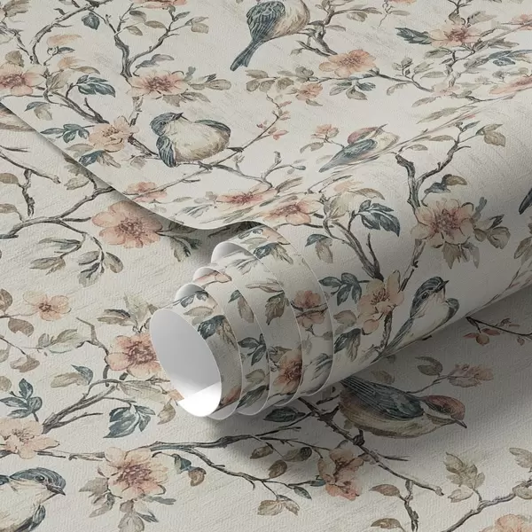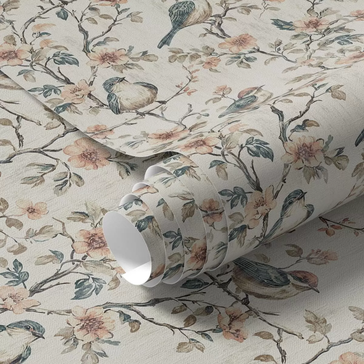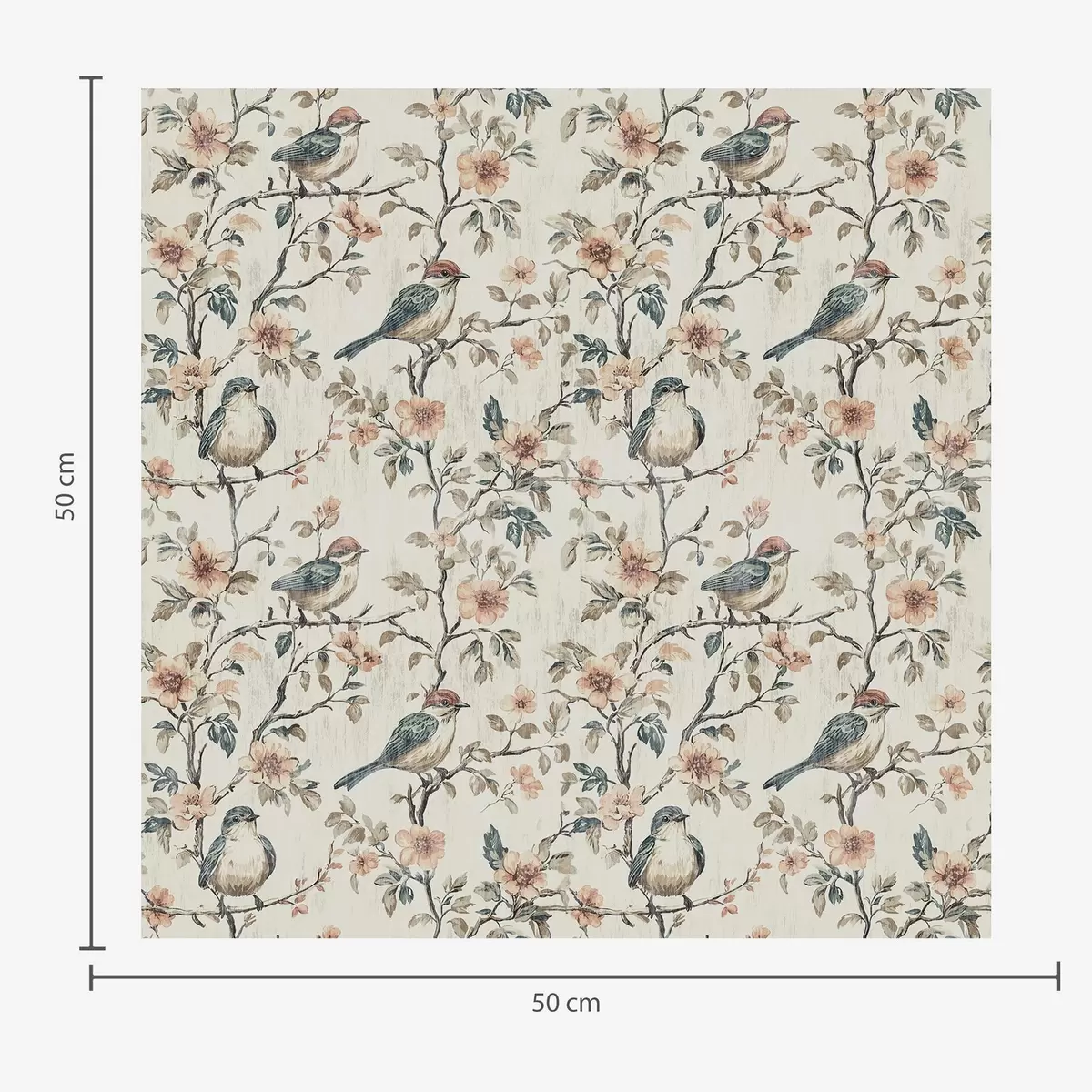 Tapeta Ptice na granama s cvijećem u retro stilu akvarela br. a00197