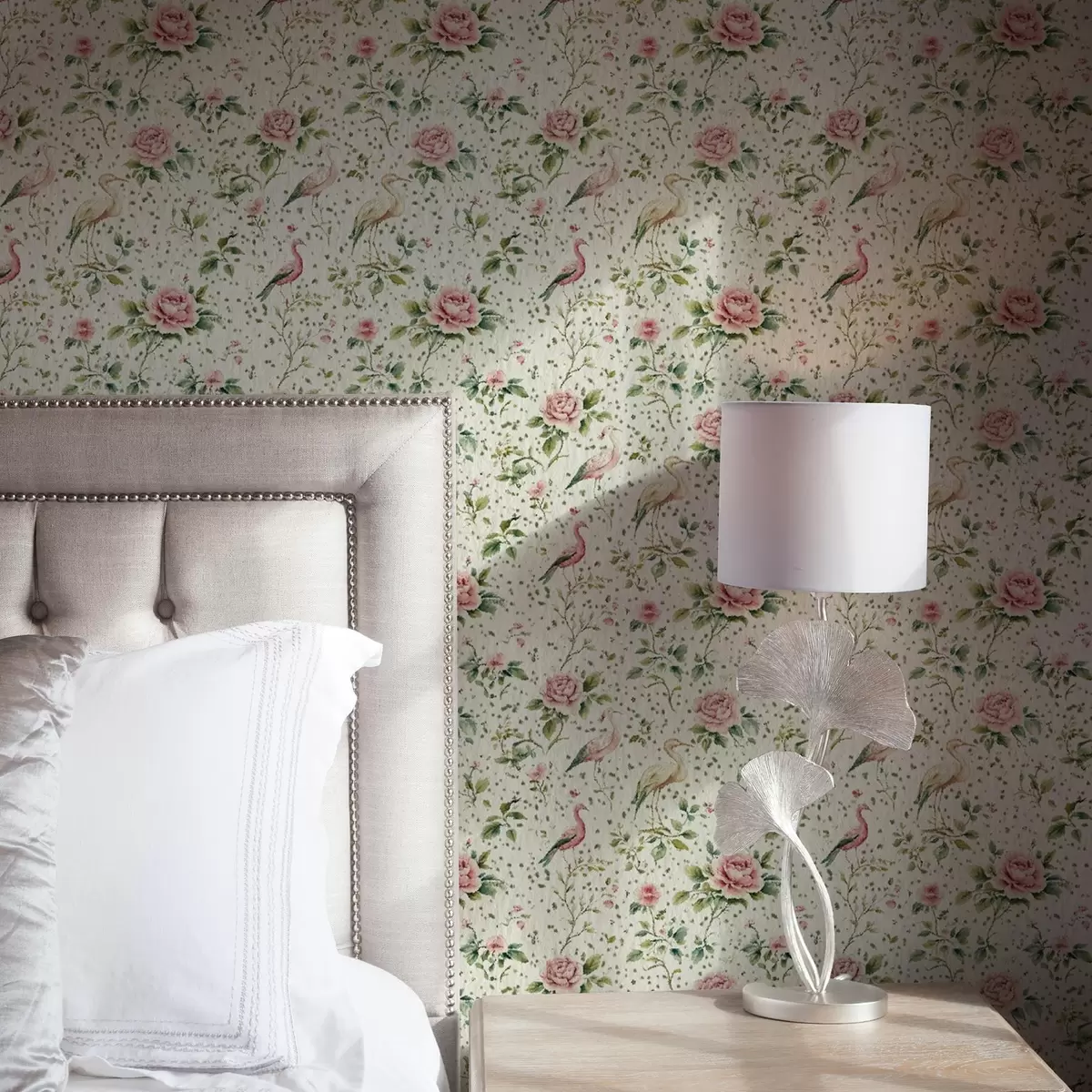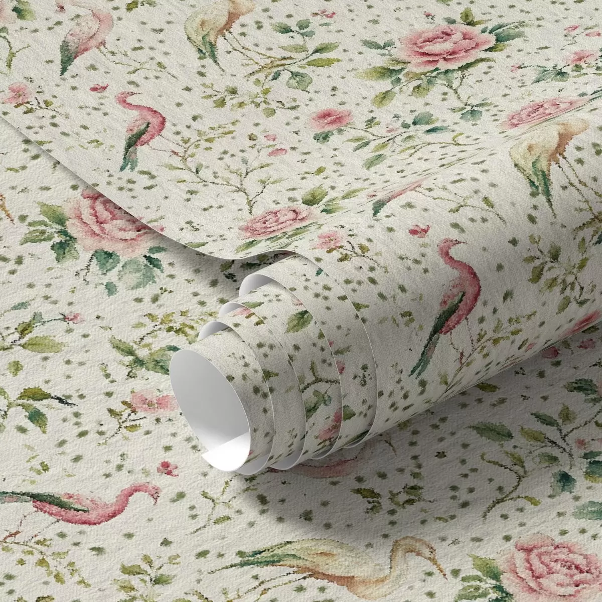 Tapeta Pastelno ružičaste ruže i ptice u shabby chic stilu br. a00201
