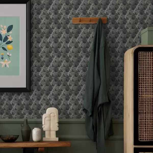 Tapeta Geometrijski šumski uzorak s drvećem u zelenim bojama br. a00209