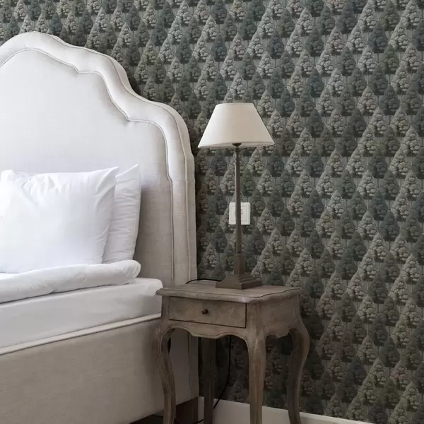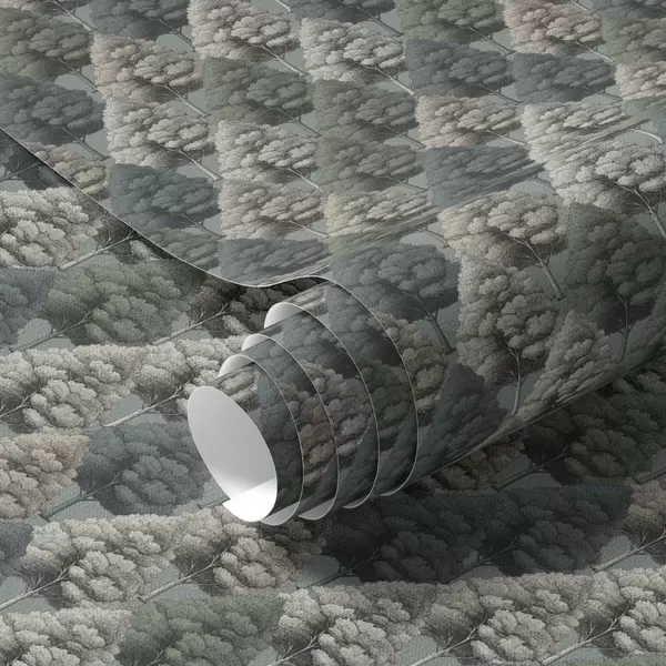 Tapeta Geometrijski šumski uzorak s drvećem u zelenim bojama br. a00209