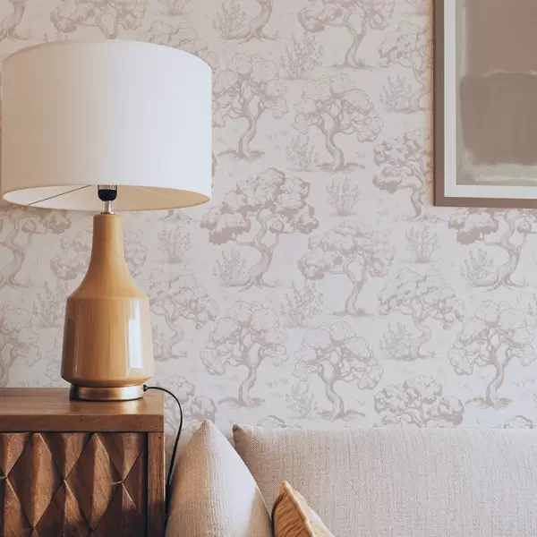 Tapeta Monokromatske siluete drveća u vintage stilu, bež shema boja br. a00210